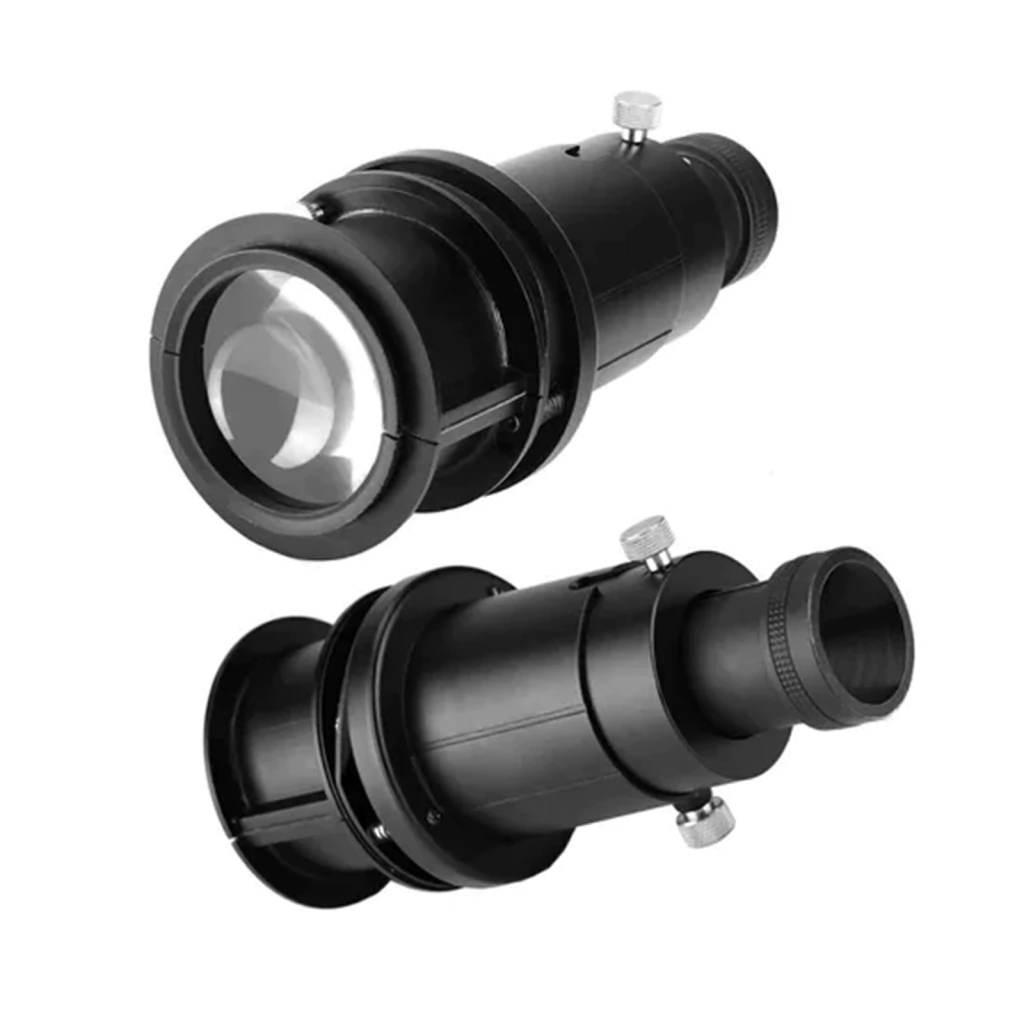 Kit de projeção fresnel Ideal para iluminação precisa e seletiva de um objeto, o acessório de projeção com lente de 85 mm e 60mm para luz LED de foco S30 da Godox é um modificador óptico que permite que o S30 projete um círculo suave desfocado ou um círculo de luz forte focado.