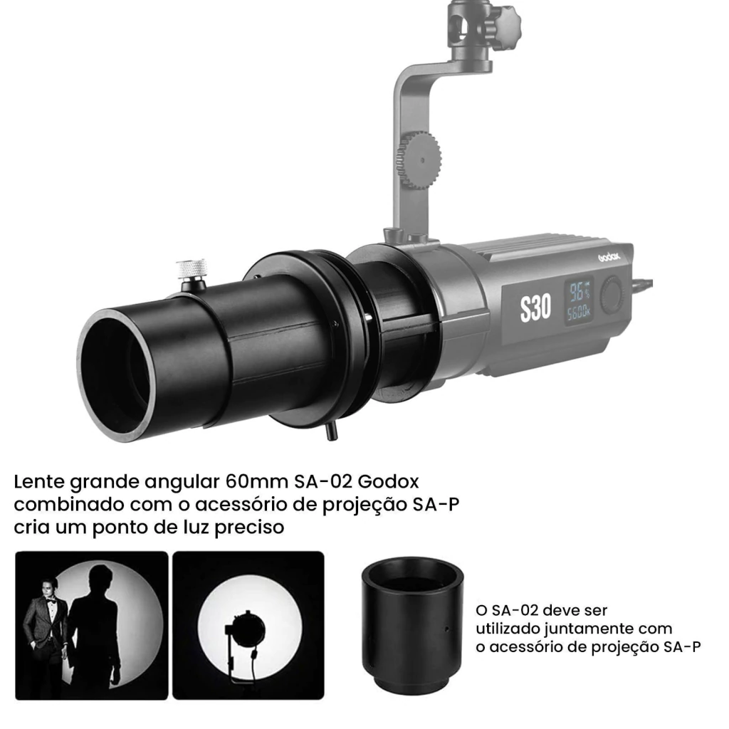 Acessório de projeção Godox com lente de 85 mm para luz LED de foco S30