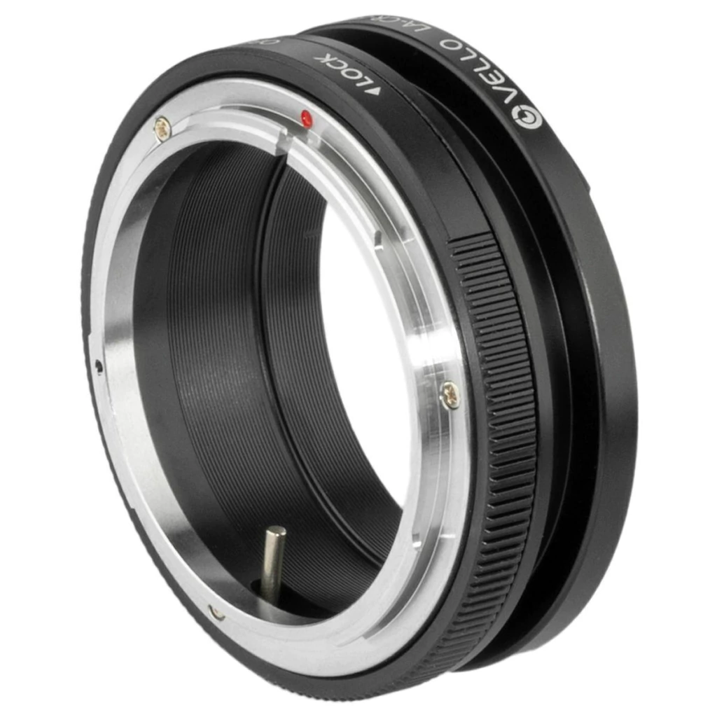 Este adaptador de montagem de lente Vello permite que uma lente de montagem Canon FD seja usada em uma câmera de montagem RF da Canon. Ele foi projetado para suportar foco até o infinito, é construído em liga de zinco e utiliza um anel de montagem em liga de alumínio para fornecer uma conexão câmera-lente durável, porém leve.