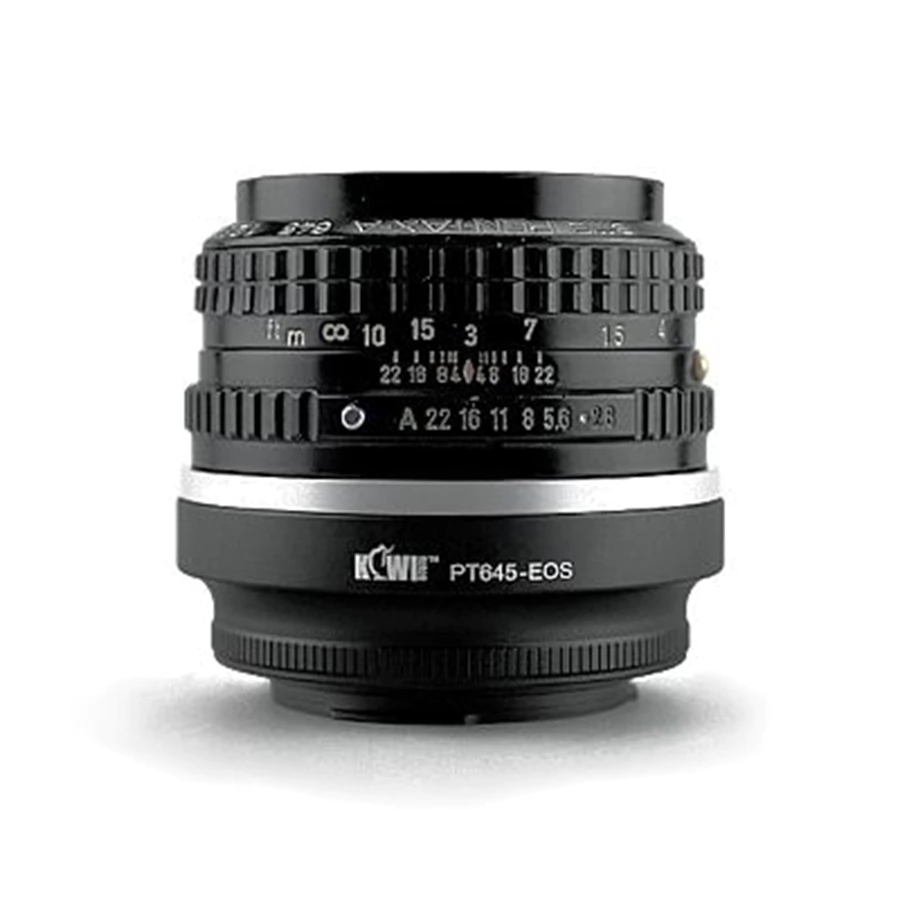 Anel para colocar objetiva Pentax 645 na camera Canon EOS,use este adaptador em sua camera Canon EOS objetivas da camera Pentax 645 e desfrute da qualidade da otica Pentax 645 em sua camera Canon para fazer fotos e videos,com este adaptador o foco e diafragma sera operado em modo manual.