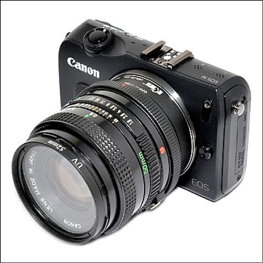 Adaptador para colocar objetiva Canon FD em cameras Canon Serie M, use objetiva da linha tradicional Canon FD em sua camera compacta Canon M, foco e diafragama operado manualmente pois o adaptador não tem partes eletronicas, com este adaptador voce consegue utilizar qualquer objetiva da linha antiga Canon FD em todas camera da linha Canon Serie M,feito em aluminio com um elemento optico de qualidade preservando toda a faixa de foco até o infinito,este adaptador vai proporcionar um ótimo desempenho em suas fotos ou filmagens, utilizando as otimas lentes da linha Canon FD.