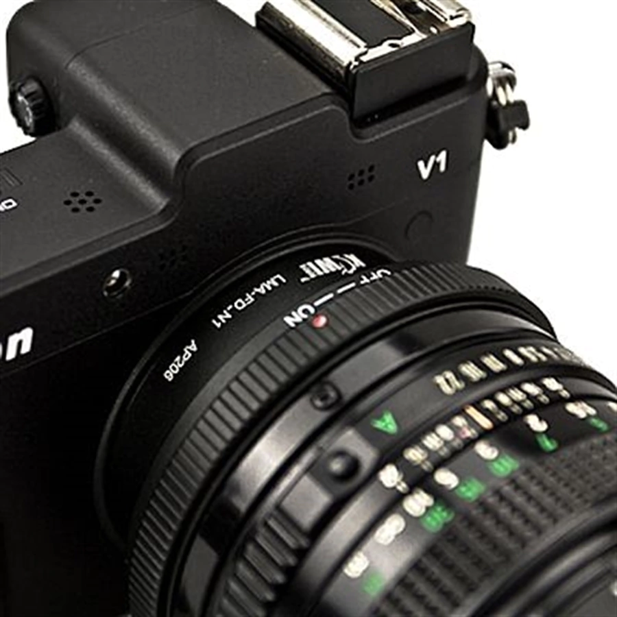 Monte objetiva Canon FD na câmera Nikon V1 ou J1, com este adaptador é possivel encaixar lentes Canon FD na Nikon J1 ou V1, compativel com toda a linha de cameras Nikon Mirrorless J1 e V1 e todas as objetivas Canon da serie FD, adaptador feito em aluminio anodizado de qualidade otimo encaixe camera/objetiva.