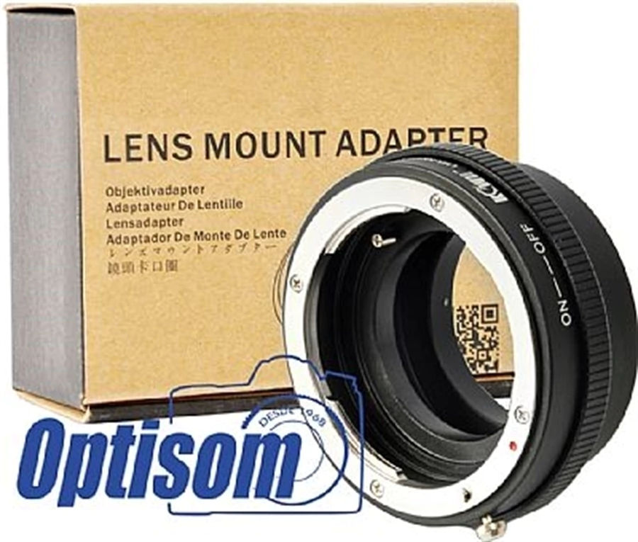 Adaptador com dispositivo para ajuste do diafragma, portanto é compativel com as linha de objetivas Nikon G e DX.