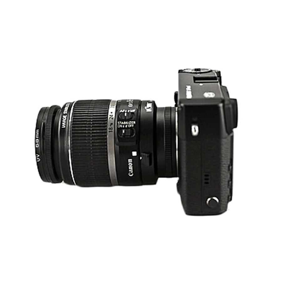 Use objetiva Canon EOS em camera da linha Fuji-X, adaptador feito de metal alumínio anodizado preto, permite que se adapte qualquer objetiva da linha Canon EOS em sua camera Fuji com boineta X-Mont de lente intercambiável.