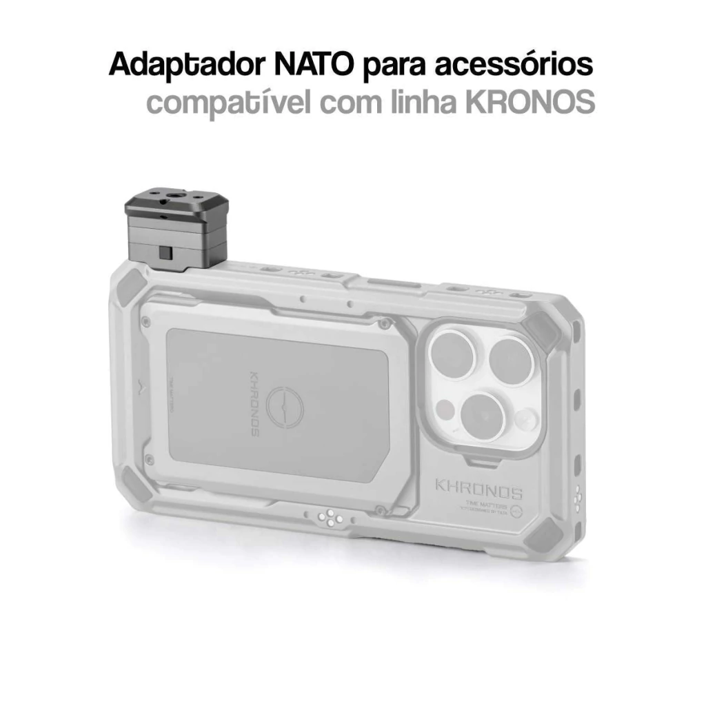 O Suporte Universal NATO da Khronos é a opção perfeita para fixar acessórios de câmera tradicionais à sua Capa de celular Khronos da Tilta.