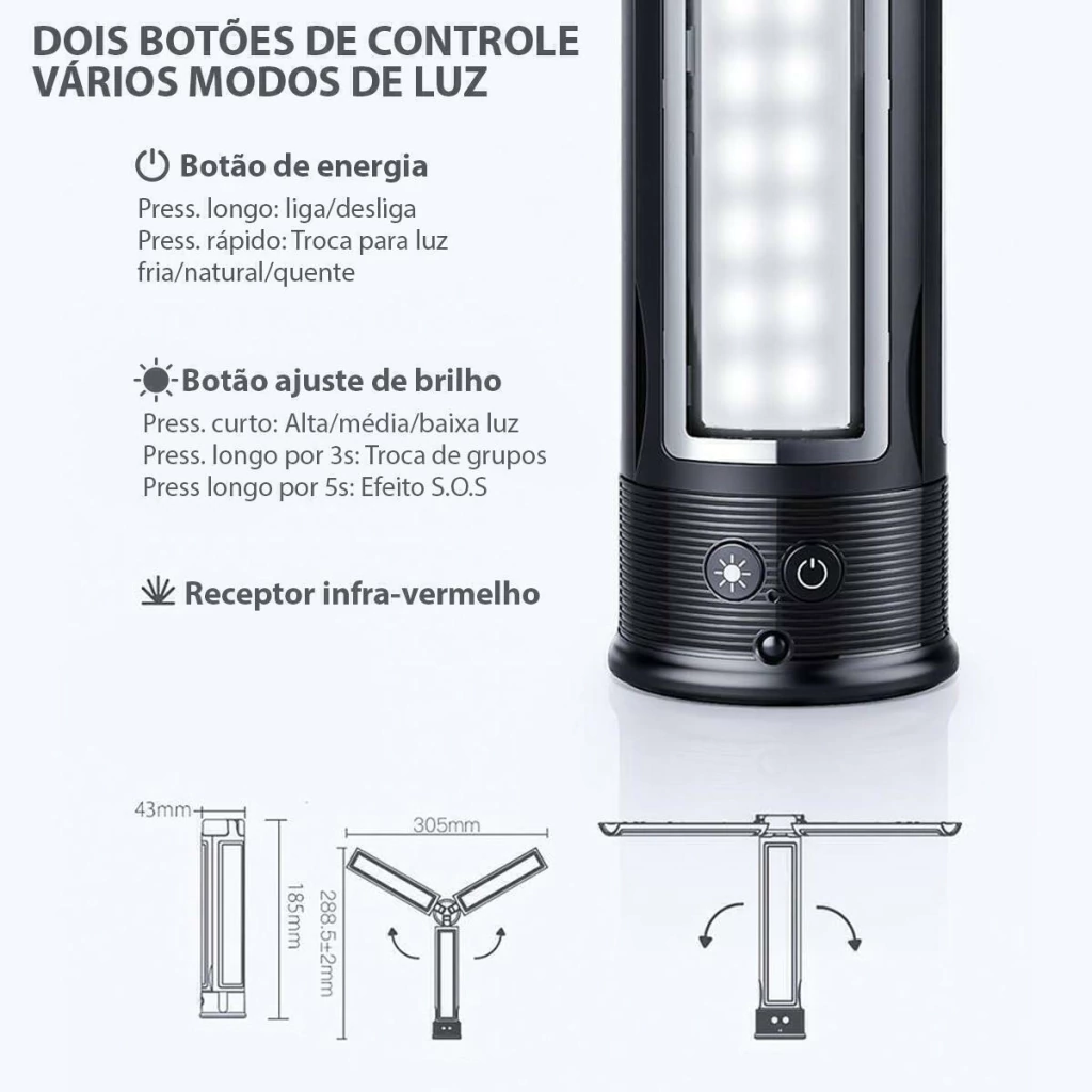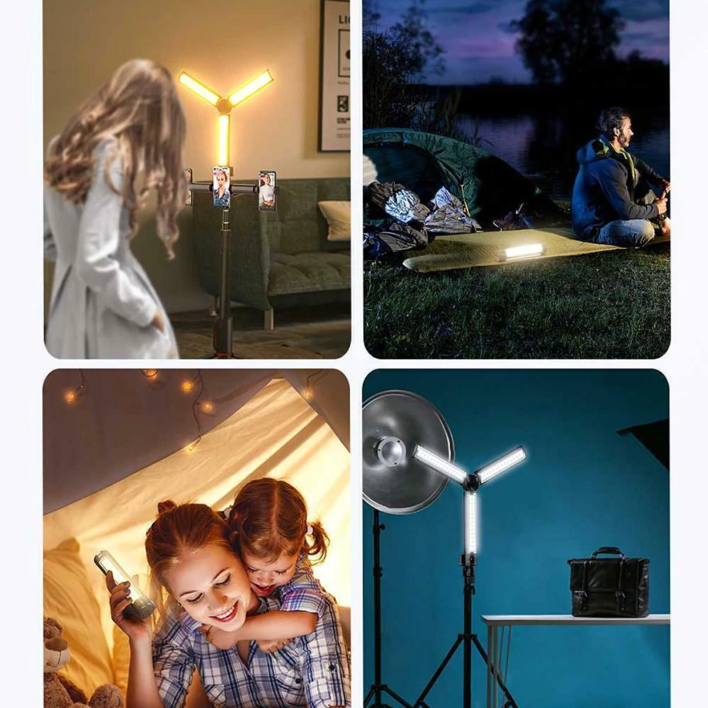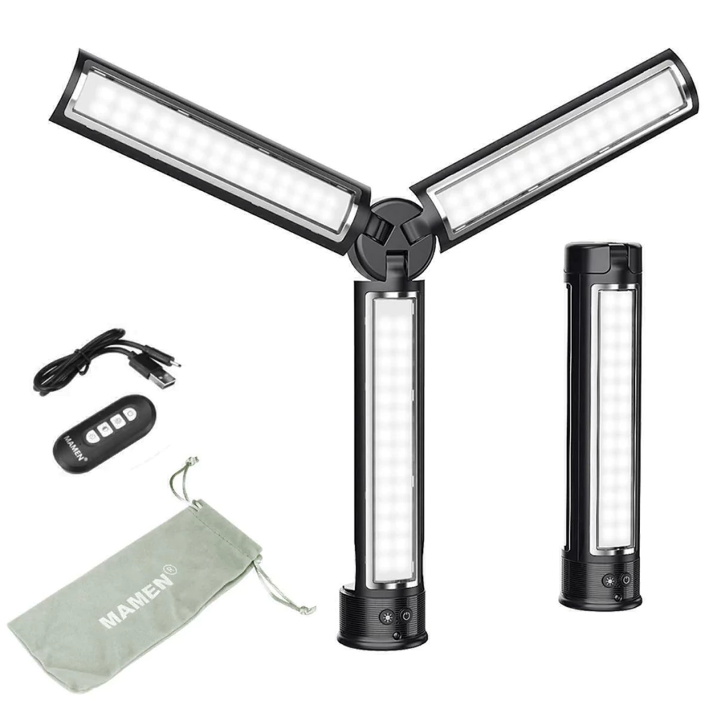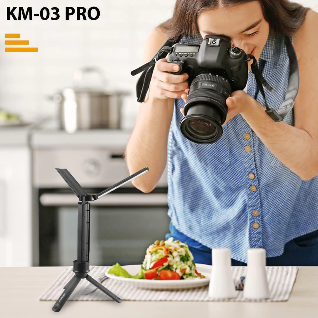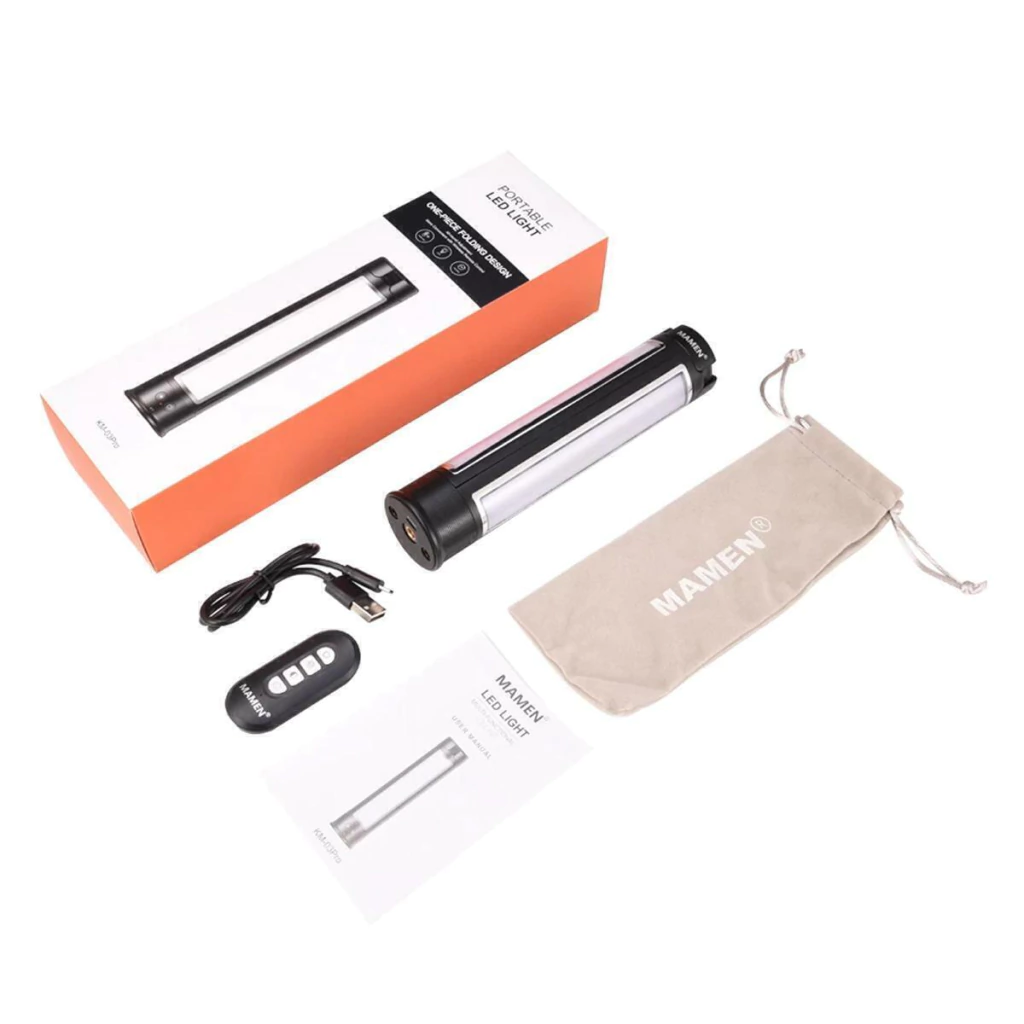 O Bastão de led Bicolor KM03-PRO da Mamen é uma ótima opção de iluminação criativa, devido à sua forma tubular alongada e peso leve, além disso ele possui um design único que pode ser usado de forma aberta triangular, onde fornece mais cobertura de iluminação.