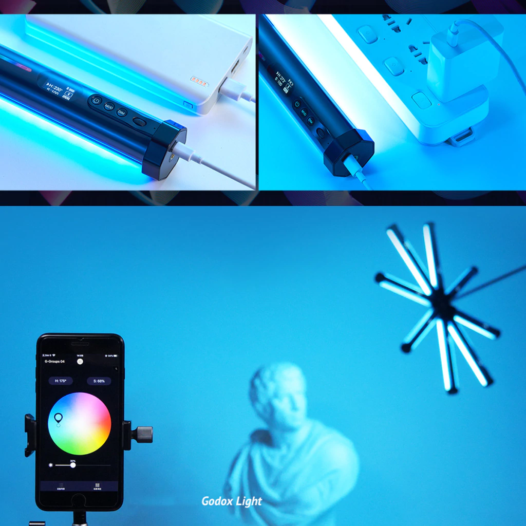 O bastão possui bluetooth para conexão direta com o seu smartphone Android ou IOS, sendo possível controlar com mais precisão o modo de iluminação, intensidade e o tom de cor. O app Godox Lightning permite sincronizar quantos bastões TL30 forem necessários para criar um ambiente ainda mais marcante!