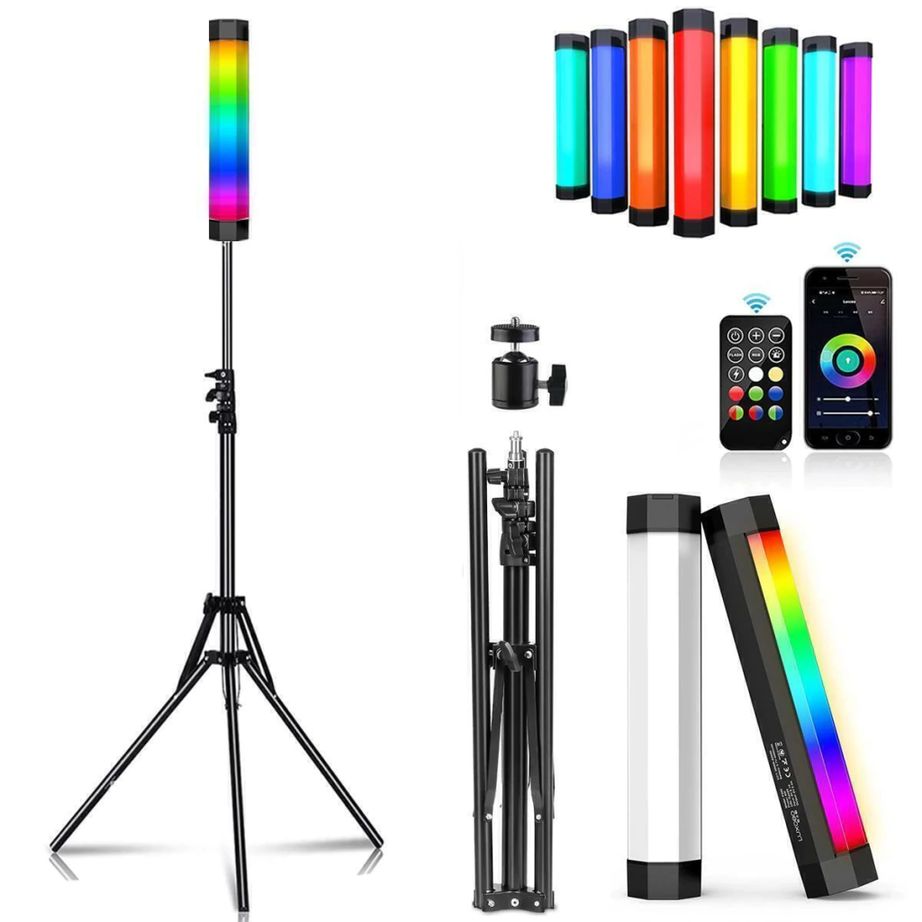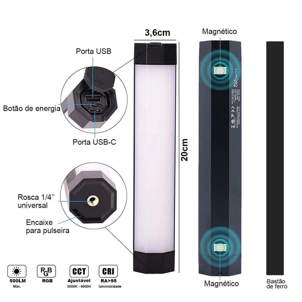O Bastão de led RGB P200 da Luxceo é uma ótima opção de iluminação criativa, devido à sua forma tubular alongada e peso leve, o iluminador se torna portátil e extremamente prático.