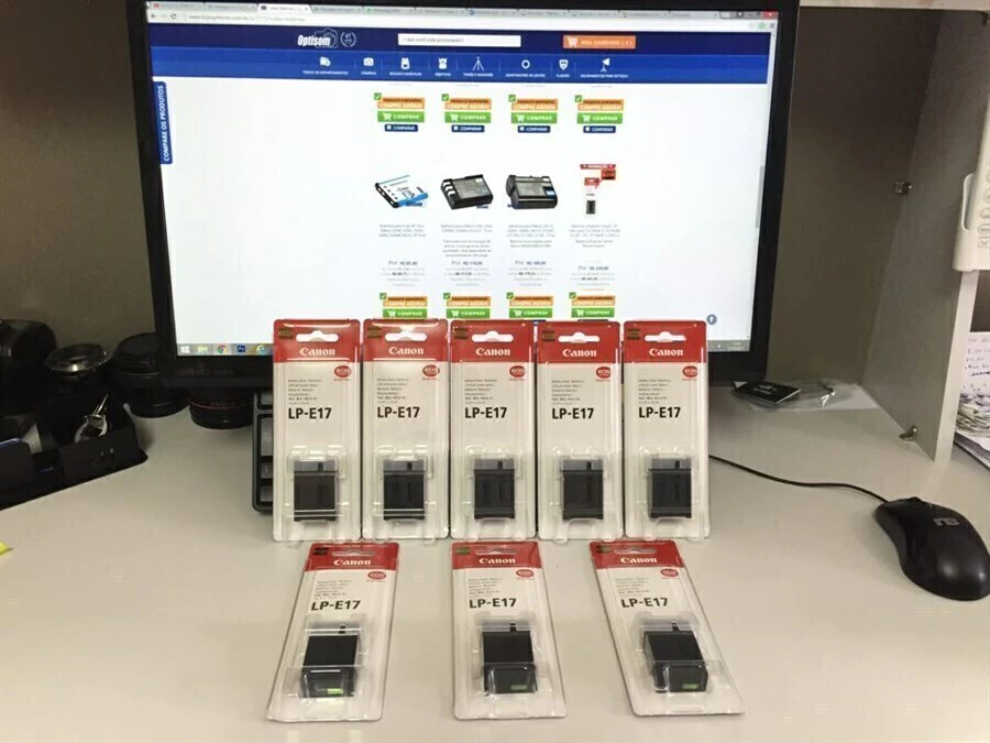 Bateria Canon LP-E17 Bateria Genuína para Canon EOS Rebel T6i ou T6s, T7i, 77D, M3, M5 e SL2 LP-E17 de 7,2 v 1040 mHa, Lithium-Ion Battery Pack. É compatível com o carregador LC-E17. Alimente sua câmera DSLR EOS Rebel T6i ou T6s Canon com a Bateria Genuína Canon LP-E17. Câmeras compatíveisCanon EOS Rebel T6i e T6s, T7i, 77D, M3, M5 e SL2. Características do produtoCapacidade: 1040mAh - 7.2 V - Lithium -ion Itens Inclusos