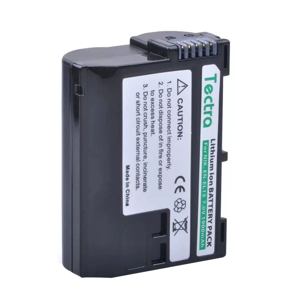 Bateria Tectra EN-EL15, recarregável de Íons de Lítio (7.0V, 1900mAh) o que garante à bateria a máxima vida útil e o máximo de potência.