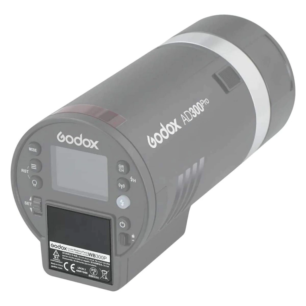 A bateria de lítio removível para AD300pro da Godox é a fonte de alimentação de 14,4V / 2600mAh para a cabeça do flash. A bateria fornecerá aproximadamente 300 flashes com potência total por carga.