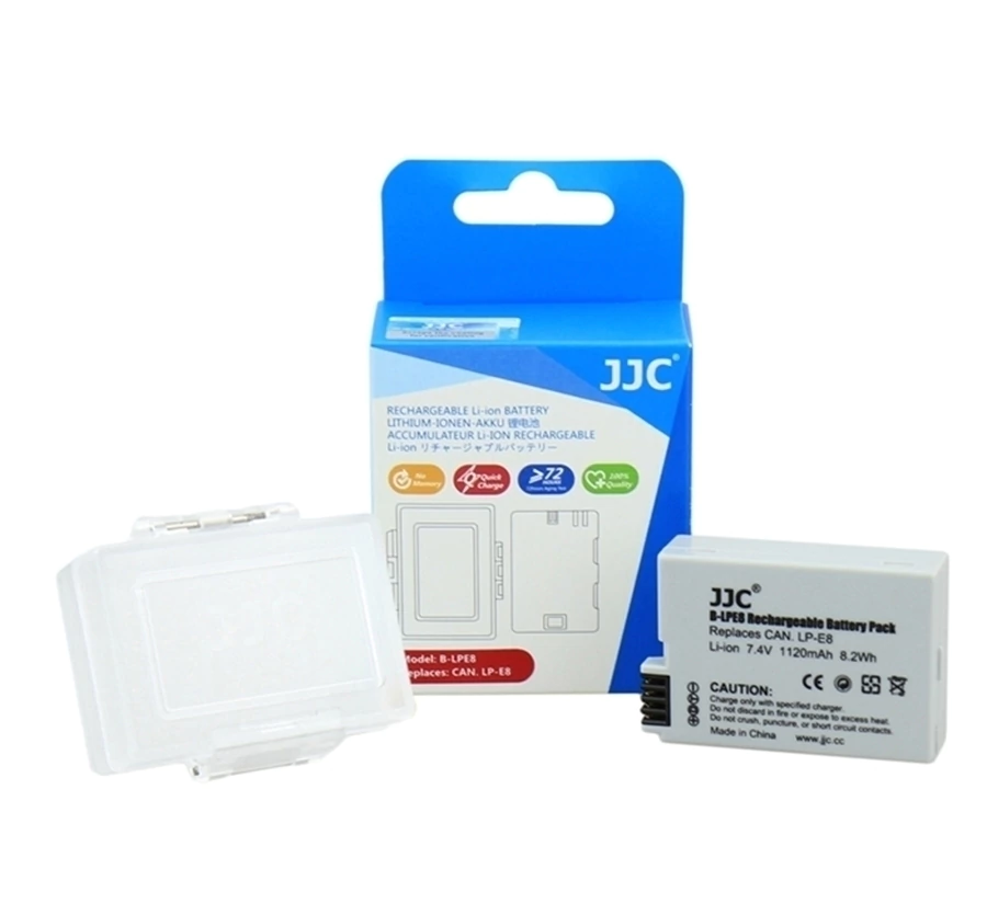 Incluso a bateria JJC modelo LP-E8 e sua caixa à prova d'água.