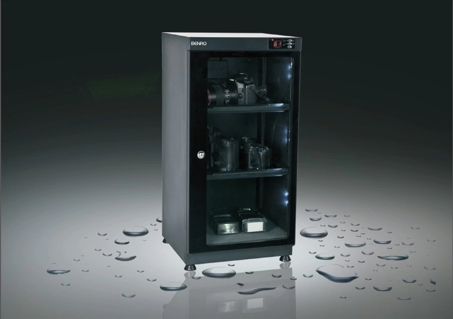 Armário de unidade controlada, este é o Benro LB-108 Guardando os seus equipamentos de foto e video neste aparelho melhora e aumenta a vida útil deles, principalmente lentes objetivas que são mais sensíveis umidades do ar gerando fungos internos que após propagado nas lentes só saem com uma limpeza óptica interna em uma oficina especializada.