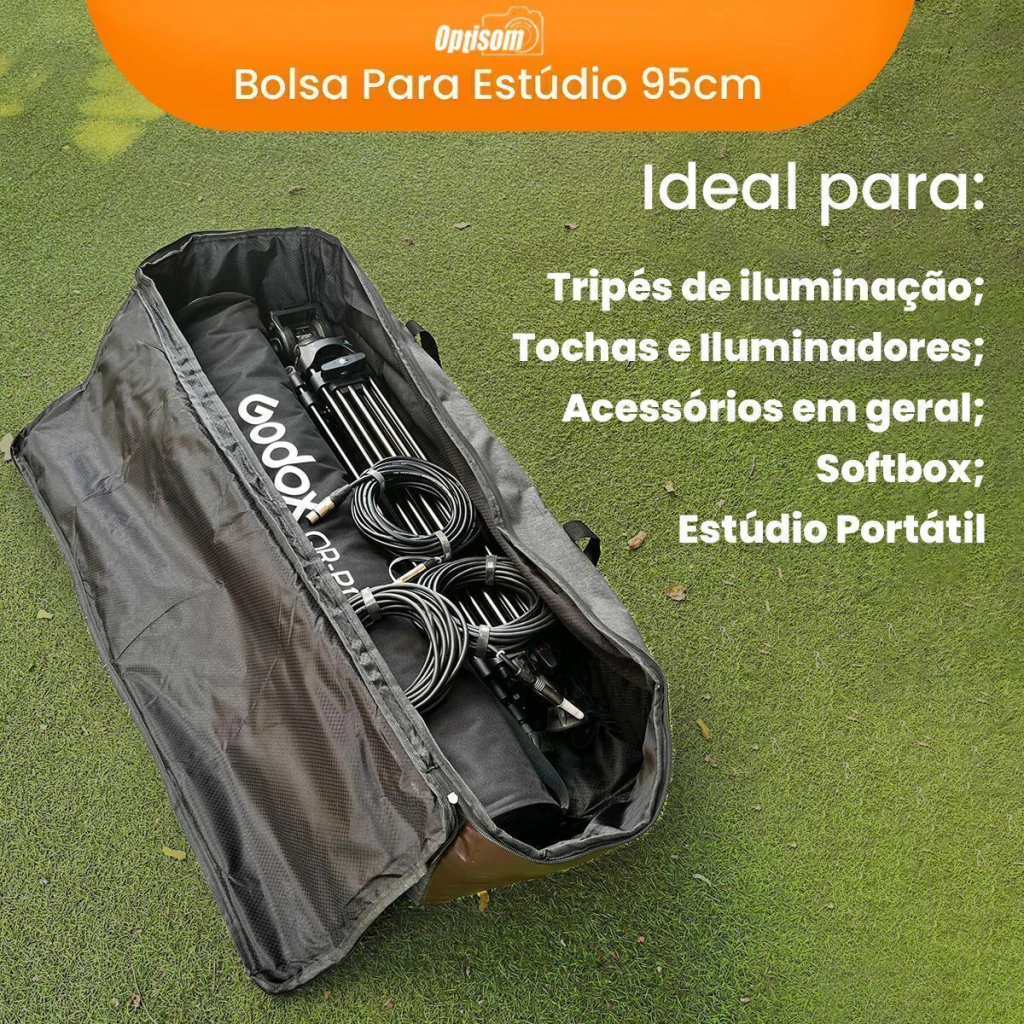 Capa Optisom mescla para equipamentos de estúdio fotográfico, foi projetada em nylon de 1200 com parte interna em EVA 10mm para transportar o seus equipamentos com segurança.