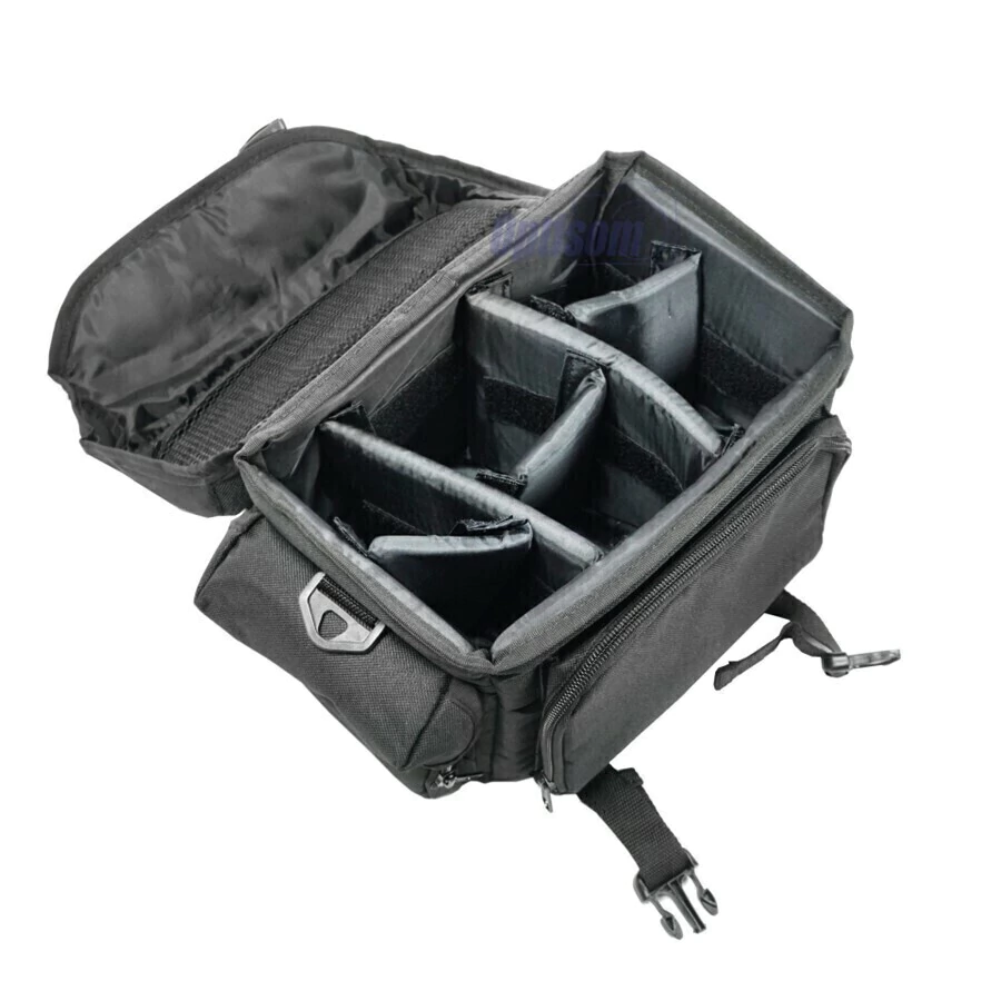 A bolsa apresenta uma única abertura que da acesso ao compartimento principal com divisórias reguláveis para que você possa guardar seus equipamentos com segurança e da forma que quiser.