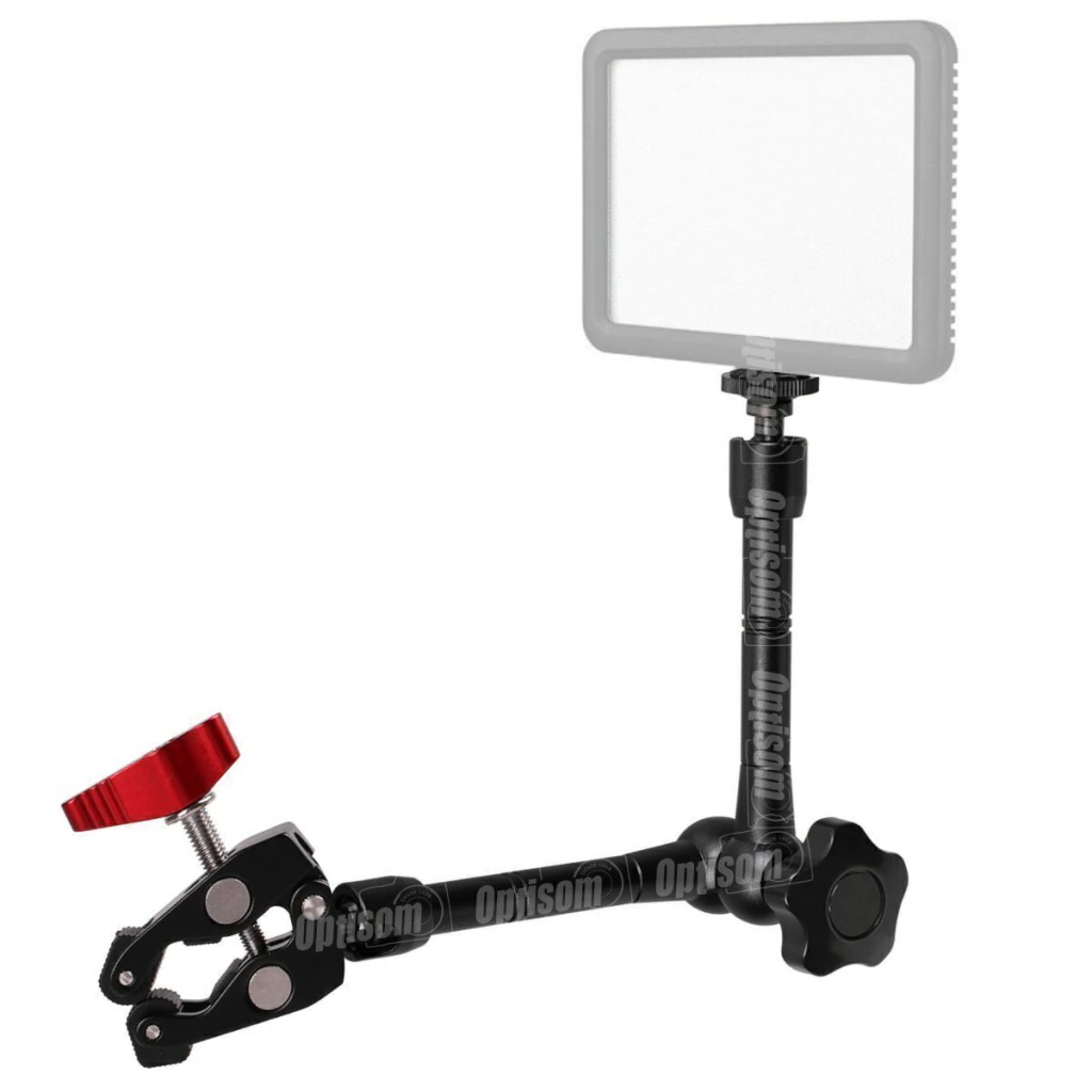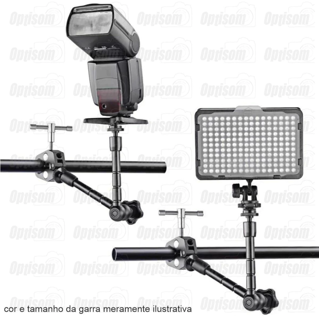 Braço articulado Magic Arm 11 polegadas com Garra Mini Clamp braçadeira de ferro para tubos e superfícies retas Greika para fixar acessórios.