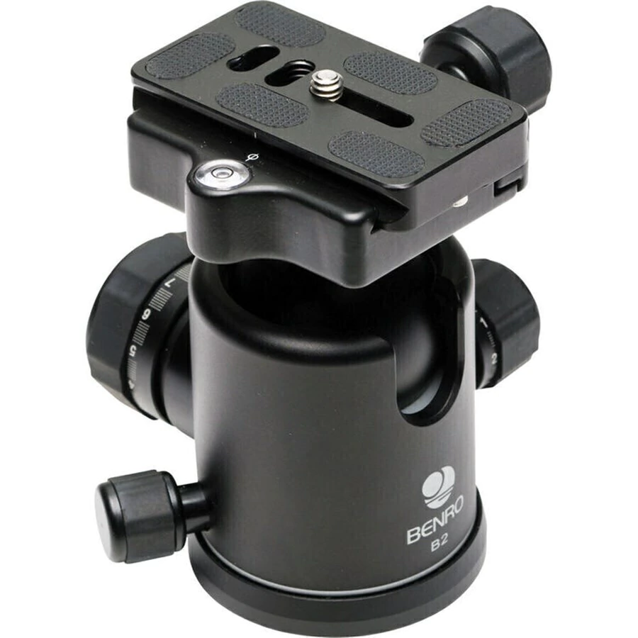 Benro B2 dupla ação Ballhead utiliza componentes de liga de magnésio para melhor desempenho e menor peso. A B2 tem um design com botões de ajuste de intensidade e bloqueio separado. Ele pode lidar com pesos de até 16 kg.