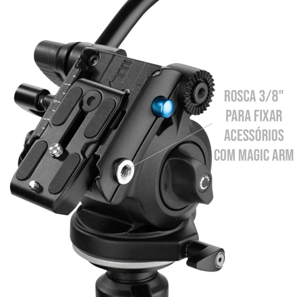 Rosca do plate: 1/4” (padrão de câmeras)