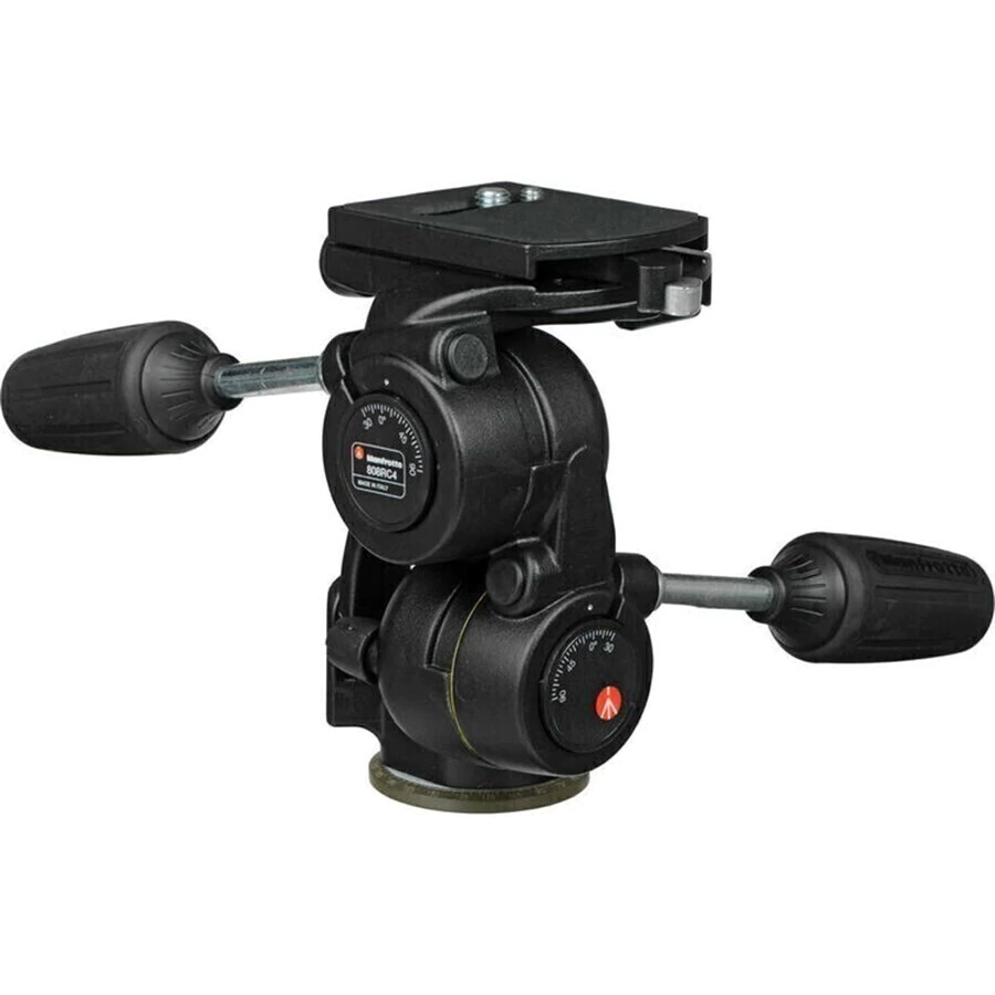 Manfrotto 808RC4 3-maneiras cabeça pan / tilt é o modelo redesenhado da linha de cabeças três vias. Ele também incorpora níveis dupla bolha eixo para nivelar. Com características de uma cabeça de vídeo, os movimentos da 808RC4 são incríveis por ter fluido hidráulico em todos eixos, esta solução inovadora, emprestado da indústria de vídeo, ajuda a mover a câmara suavemente ao enquadrar a imagem, uma vez que ajuda a equilibrar um pouco o peso da câmera. Além disso, ele absorve o choque de corpos e lentes ao atingir a parada final do movimento da cabeça. Isso graças a ter dois botões (um no movimento -30° 90° tilt e outra no movimento -30° 90° horizontal) no qual você regula a força do contrapeso, ou totalmente solta, sem absorção do choque ou mais firme, absorvendo então o impacto da câmera quando a cabeça chega no seu curso final. Todos os movimentos contam com marcações de nível. Três manoplas que travam os movimentos separadamente estão inclusas. Plate engate rápido modelo RC4 com parafuso 1/4 e 3/8 inclusos podendo ser escolhido na hora em que for usar essa cabeça. Itens Inclusos: 01 Manfrotto modelo 808RC4; 01 Plate RC4; 03 Manoplas para travas dos movimentos; 01 Manual.