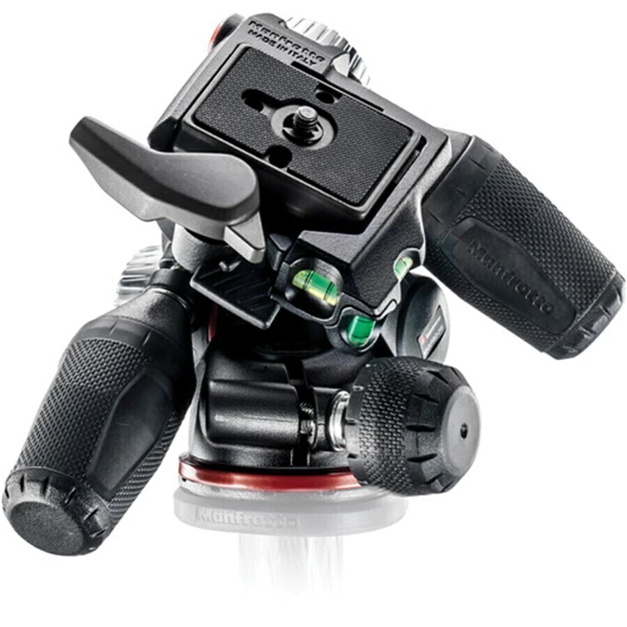 MHXPRO-3W 3-Way cabeça da Manfrotto é compacta pan / tilt cabeça com alças retrátil que pode ser estendido conforme necessário. Dois botões controlam o atrito para a inclinação de frente para trás e de lado a lado, permitindo que você ajuste os movimentos com base no peso de sua engrenagem. Três bolhas de nivelamento garantem que a composição esteja nivelada em todos os eixos. Uma placa de liberação rápida 200PL com um parafuso de montagem de câmera 1/4" está inclusa.