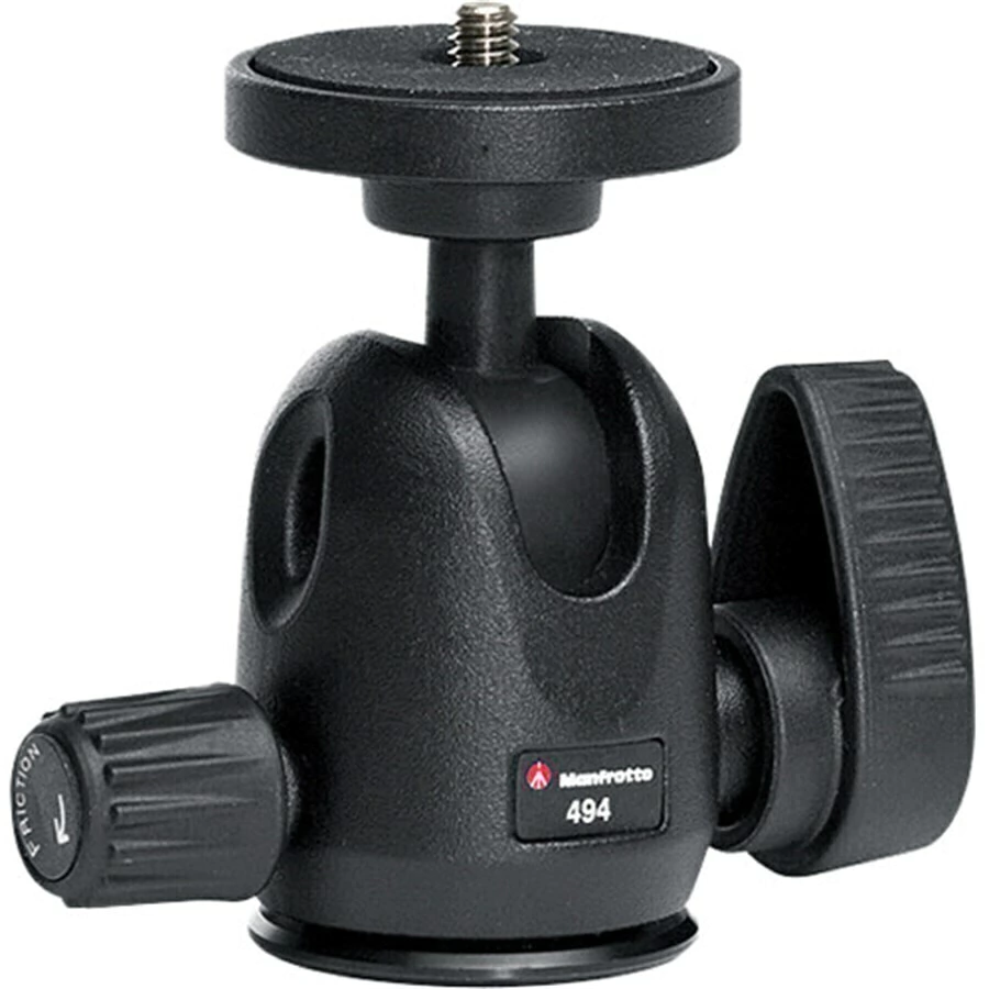 Compacto e pequeno, a Cabeça Manfrotto 494 Head Mini Ball com o material de alumínio com capacidade de carga de 4 kg. Ideal para D-SLR compacta e ponte estilo de câmeras digitais, tampo fixo pradão com rosca de ¼ polegada, Pesa apenas 220 gramas, substitui o 484 Head Mini Ball.