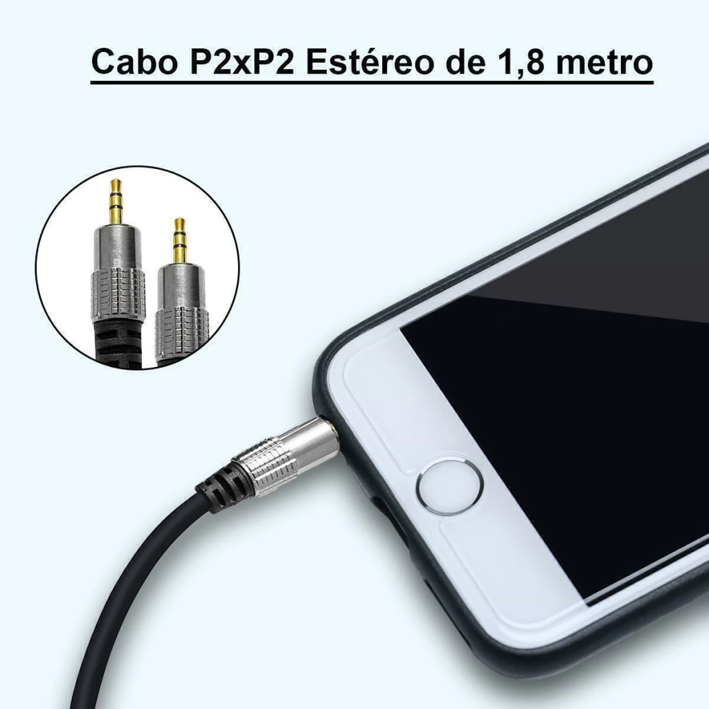 Cabo P2xP2 Estéreo de 1,8 Metro da MXT mais conhecido como cabo auxiliar para som, este cabo possibilita a conexão de equipamentos com entradas de som tipo P2 (3,5mm), sendo um dos lados o transmissor e o outro lado o receptor.
