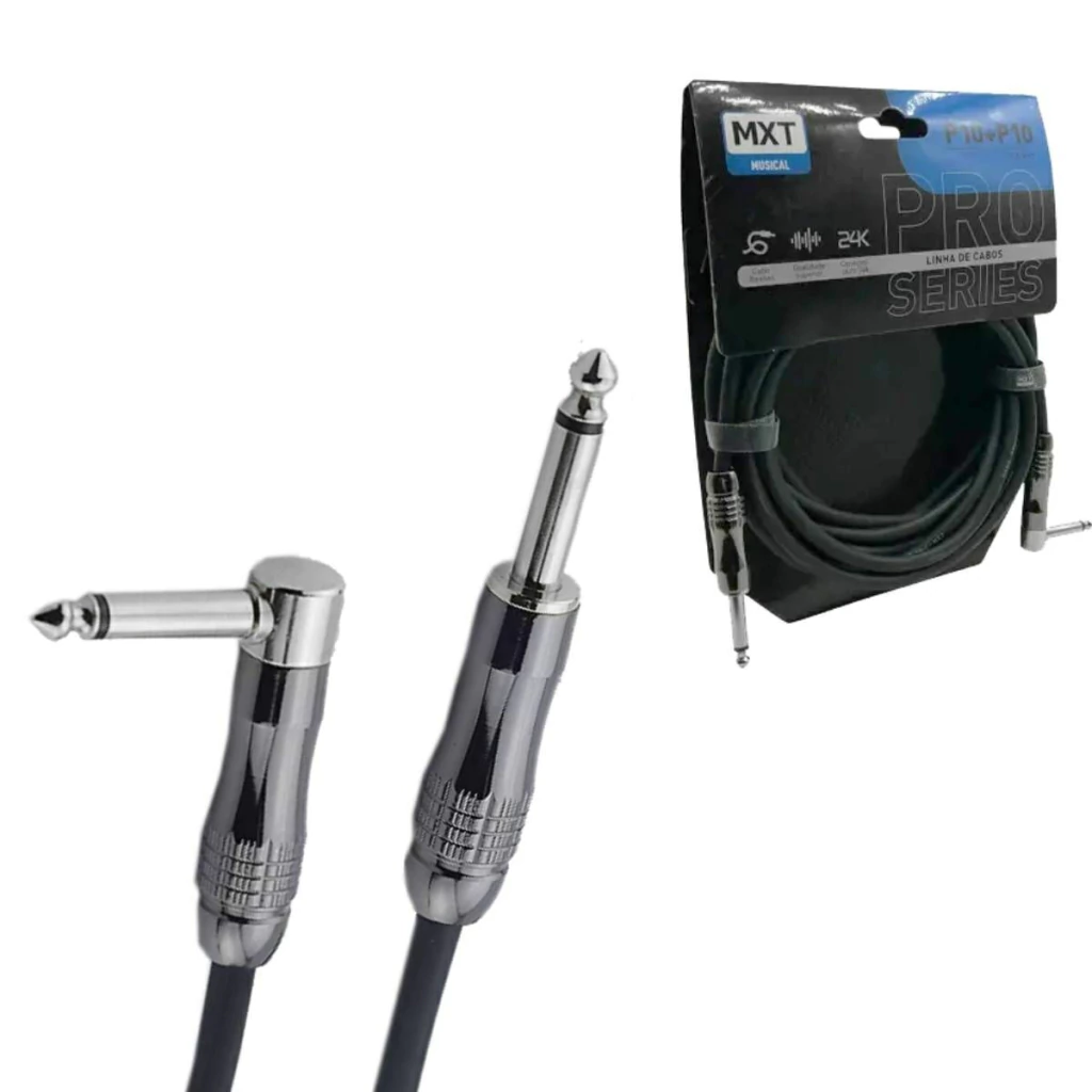 Cabo de áudio profissional P10/P10 mono de 10 metros com conectores 90 graus e reto.