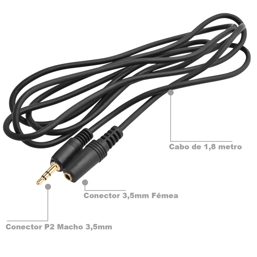 Portátil, o Extensor P2 ajuda como cabo auxiliar de extensão compatível com qualquer dispositivo que tenha 3,5 mm.