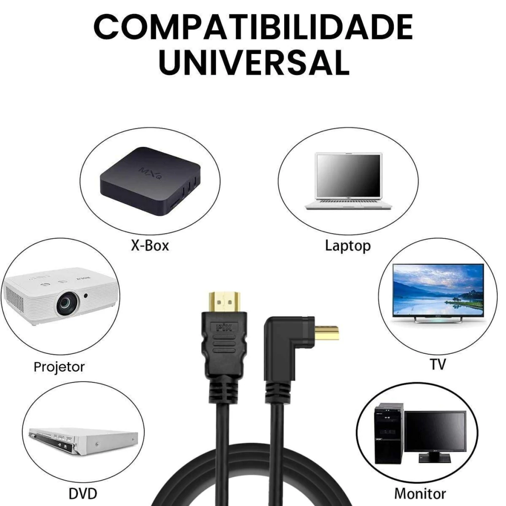 Cabo HDMI de 3 metros da MXT com pino 90 graus, com alta qualidade de vídeo e áudio; compatível com tecnologia 3D e 4K ultra HD