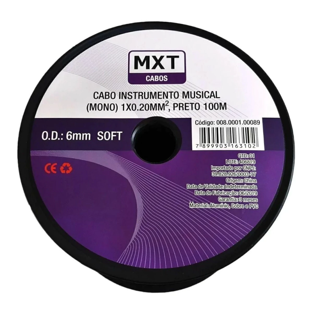 Carretel de 100 metros de cabo para montar cabos de microfone, cabos de guitarra, violão, teclado, instrumentos musicais em geral.