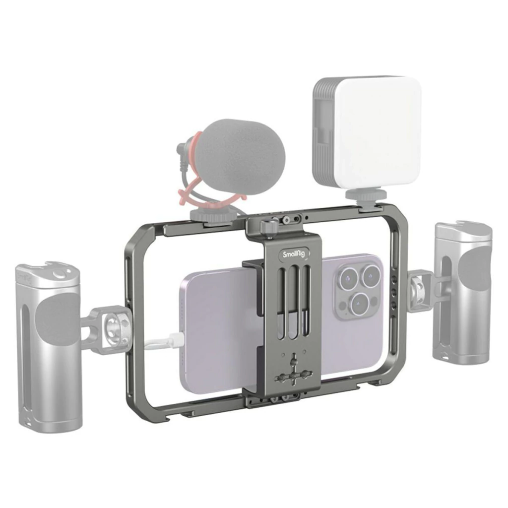 Construída para suportat a maioria dos smartphones de 2,2 a 3,5" de largura, com ou sem capa externa, a gaiola universal para celular da SmallRig foi projetada para vlogging, transmissão ao vivo, produção de filmes móveis e muito mais.