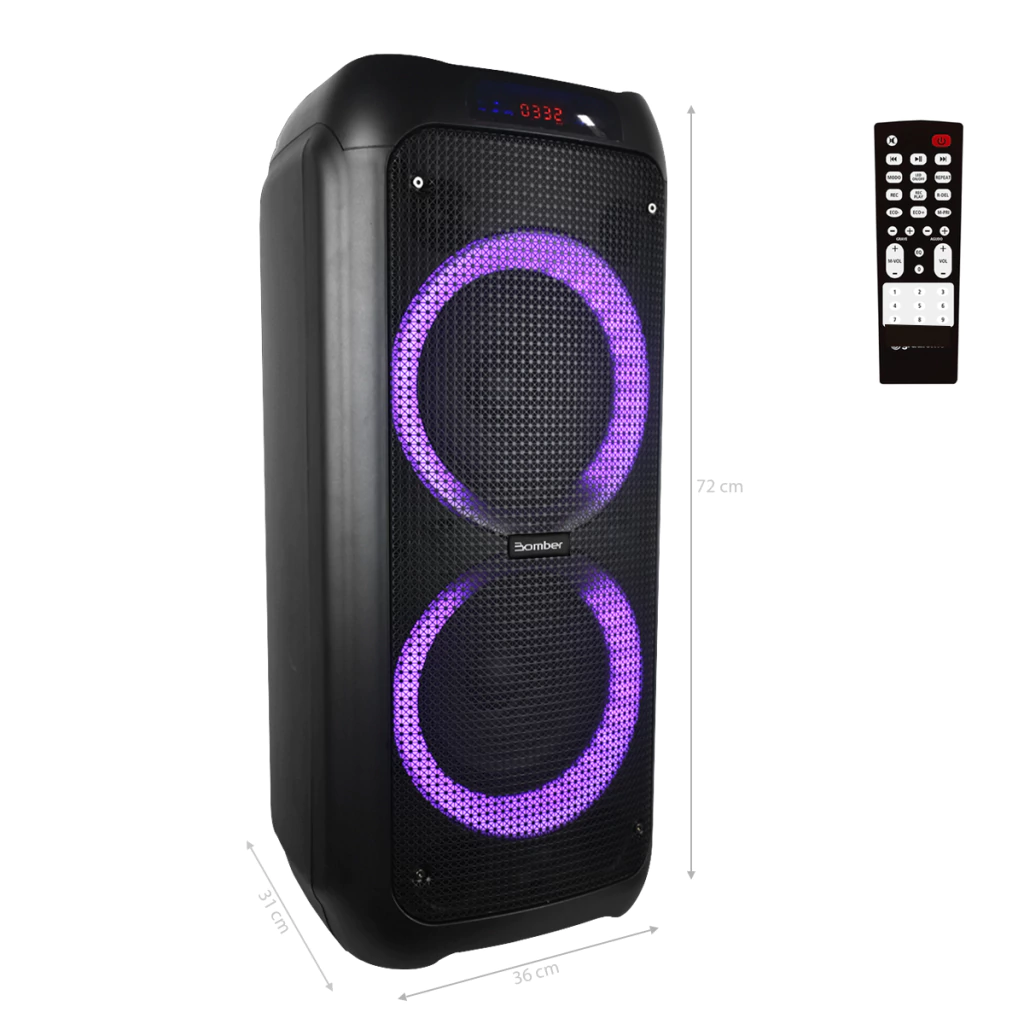 A caixa de som Bomber Party 1200 conta com dois woofers de 8 polegadas e um tweeter de alto desempenho. Ela também possui um controlador estilo DJ na parte de cima para otimizar e melhorar a qualidade do som de acordo com o seu critério.