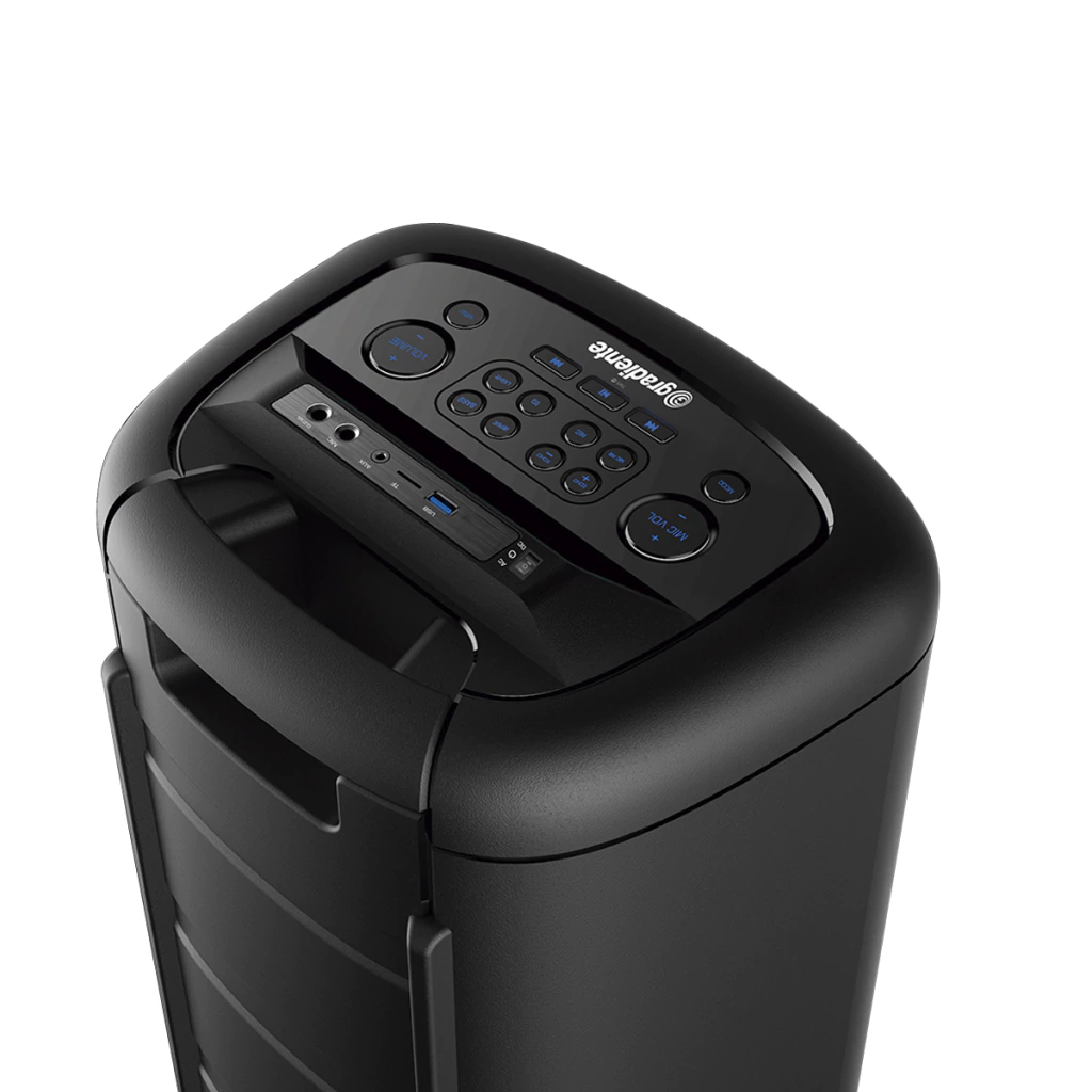 Os woofers duplos proporcionam graves realçados e sem ruídos através da função Megabass. Os LEDs dinâmicos presentes nos falantes woofers frontais da Gradiente a deixam preparada para animar ainda mais a sua festa.