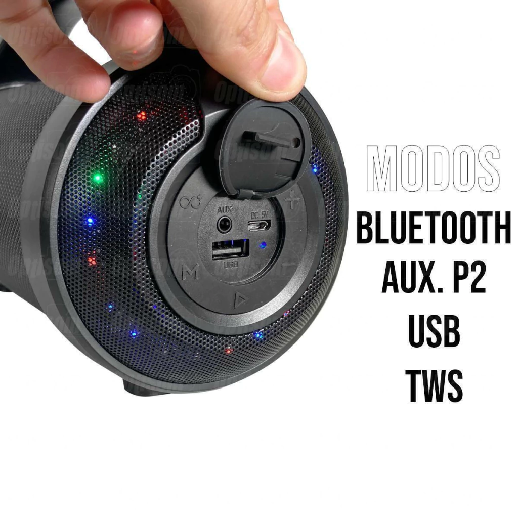 Caixa de som bluetooth de 70W RMS Multilaser Bazooka SP600 com entrada Auxiliar P2 e PEN DRIVE.