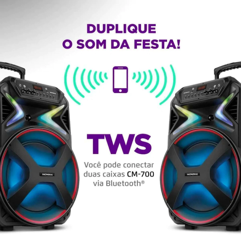Caixa de som 15” Sem Fio Bluetooth com Rodinhas MONDIAL CM-700 700W RMS Connect Light Plus