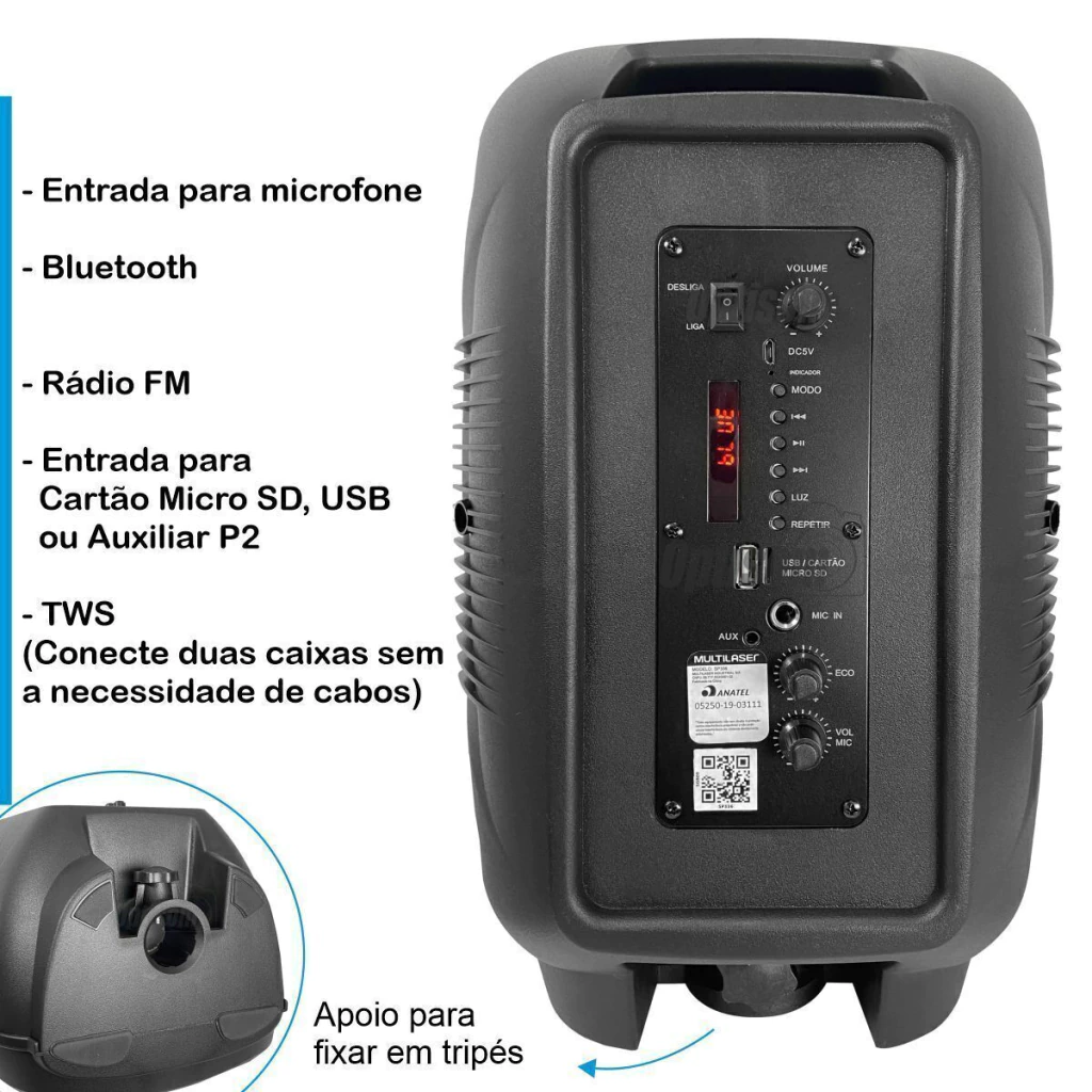 Caixa de Som Multilaser Mini Torre Party SP336 LUZES RGB 200W RMS SEM FIO COM BATERIA DE 6H DE DURAÇÃO E MICROFONE INCLUSO PARA CURTIR AINDA MAIS SEUS MOMENTOS DE LAZER.