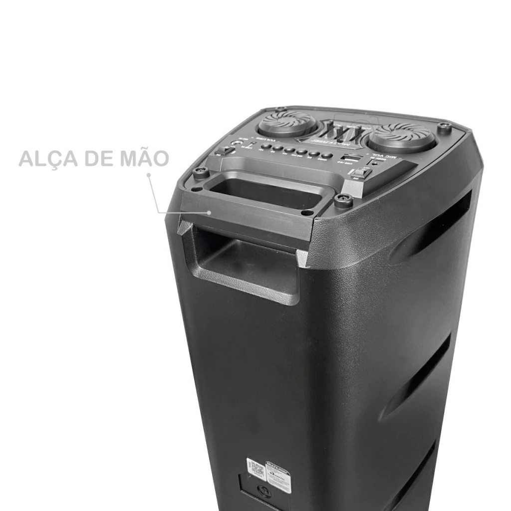 Caixa de Som Multilaser Mini Torre NEON X SP379 LUZES RGB 300W RMS SEM FIO COM BATERIA DE 6H DE DURAÇÃO + Microfone, com Bluetooth, Rádio FM, entrada AUX P2, entrada de Pen Drive e Cartão Micro SD.