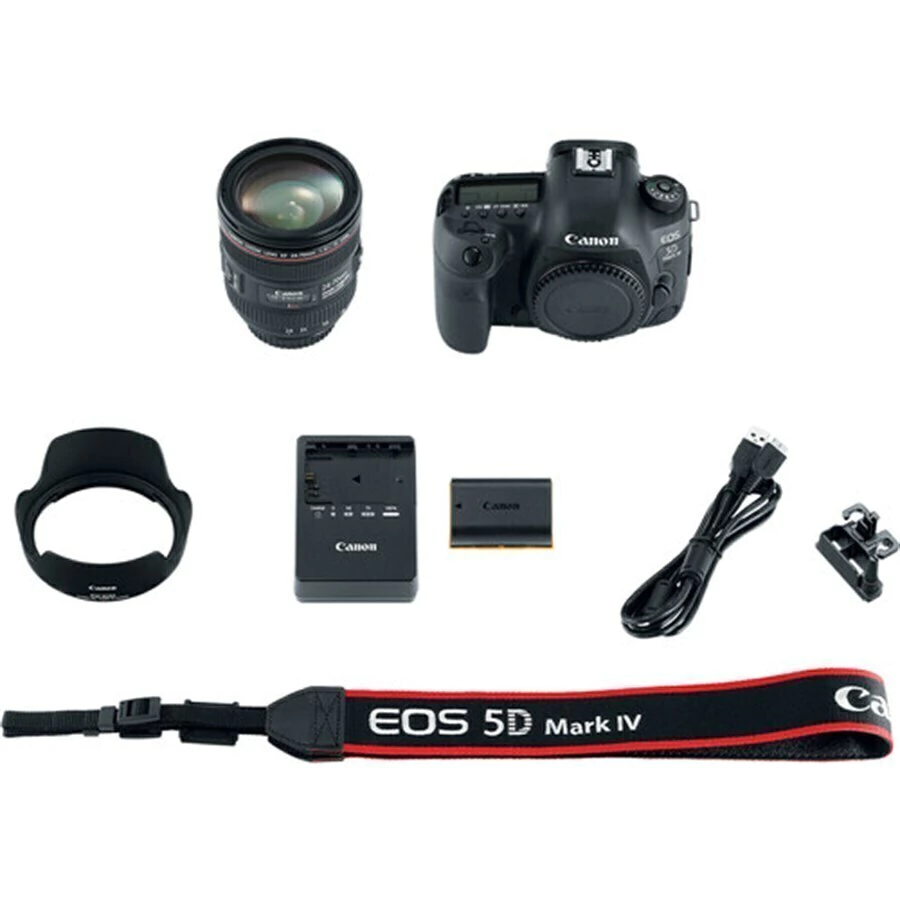 Canon lançou a DSLR 5D Mark IV com 24-70mm f / 4L que é uma excelente opção para fotografia e uma máquina de vídeo 4K capazes. Este perito multimídia oferece um sensor full-frame CMOS recentemente desenvolvido de 30.4MP emparelhado com o processador de imagem DIGIC 6+ a fim de equilibrar detalhes finos e resolução com desempenho de pouca luz e sensibilidade. Ele é capaz de funcionar dentro de uma gama nativa da ISO 100-32000, o qual pode então ser expandido para um impressionante ISO 50-102400, para imagens nítidas e de baixo ruído em uma variedade de condições. Junto com estas melhorias para a qualidade de imagem, os usuários poderão desfrutar de um aumento de desempenho em toda a linha com um sistema AF avançado, built-in Wi-Fi, NFC e GPS, e muito mais.