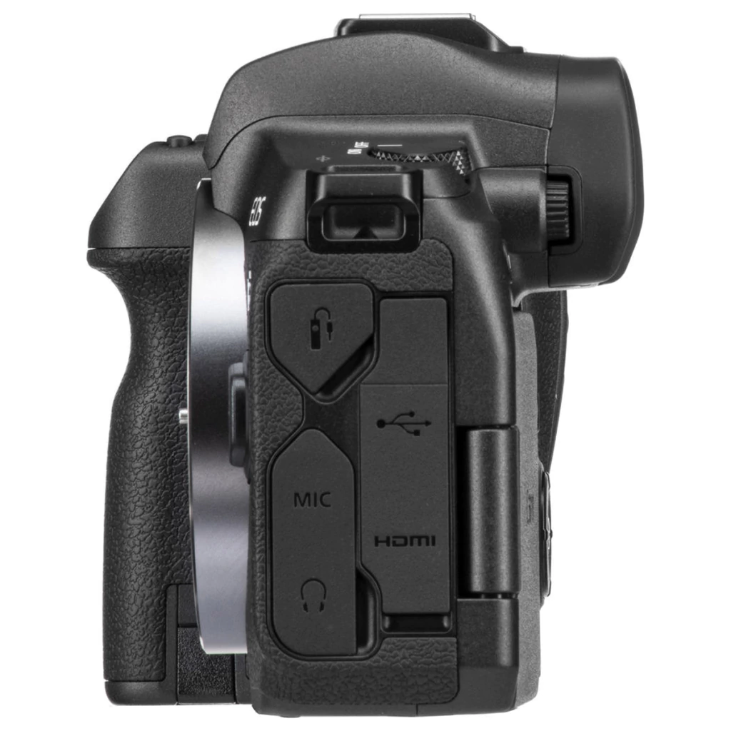 Começando com uma nova montagem de lente, a EOS R é a primeira câmera a suportar a linha de lentes de montagem RF da Canon. Esta montagem é caracterizada por seu amplo diâmetro de 54mm e curta distância de flange-back de 20mm, que promove a capacidade de projetar lentes que são mais rápidas e menores do que suas equivalentes em SLR.