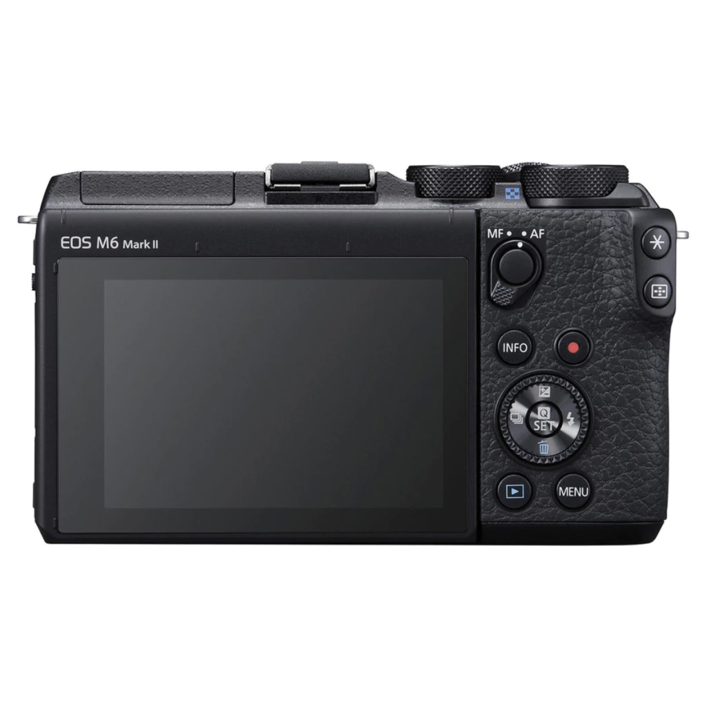 Complementando os recursos de imagem, a EOS M6 Mark II incorpora um LCD touchscreen de 3", que tem um design de inclinação de 180 ° para fotos frontais.