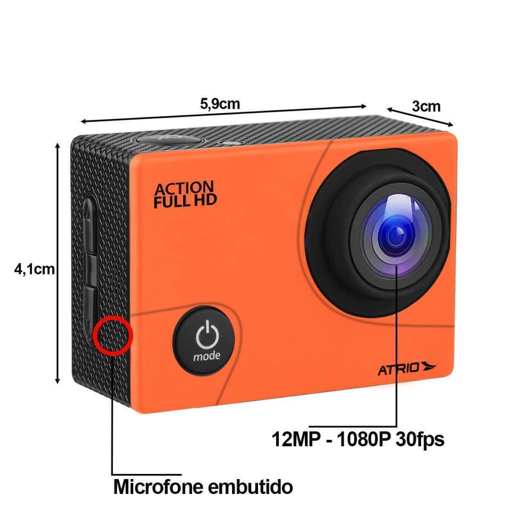 A Câmera De Ação Action Full Hd da Atrio captura todos os seus momentos incríveis, sendo eles esportivos ou não!
