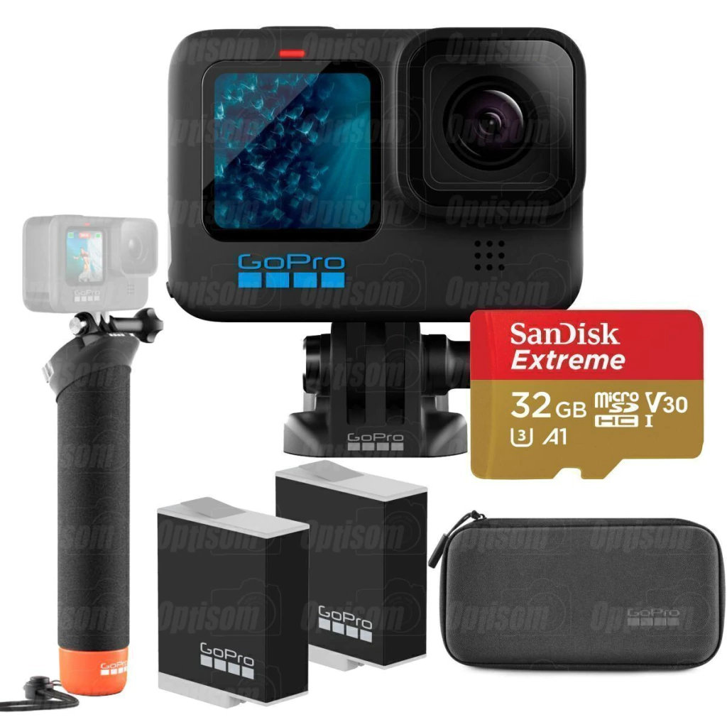 KIT CâMERA GOPRO HERO 11 BLACK + BATERIA EXTRA GOPRO ENDURO + BASTÃO GOPRO FLUTUADOR + CARTÃO SANDISK 32GB