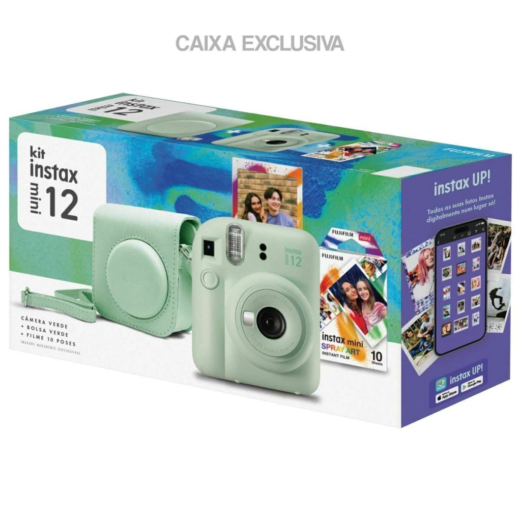 CHEGOU A NOVA CÂMERA FUJIFILM REVELA FOTO NA HORA INSTAX MINI 12 COM BOLSA ORIGINAL + FILME 10 FOTOS SPRAY