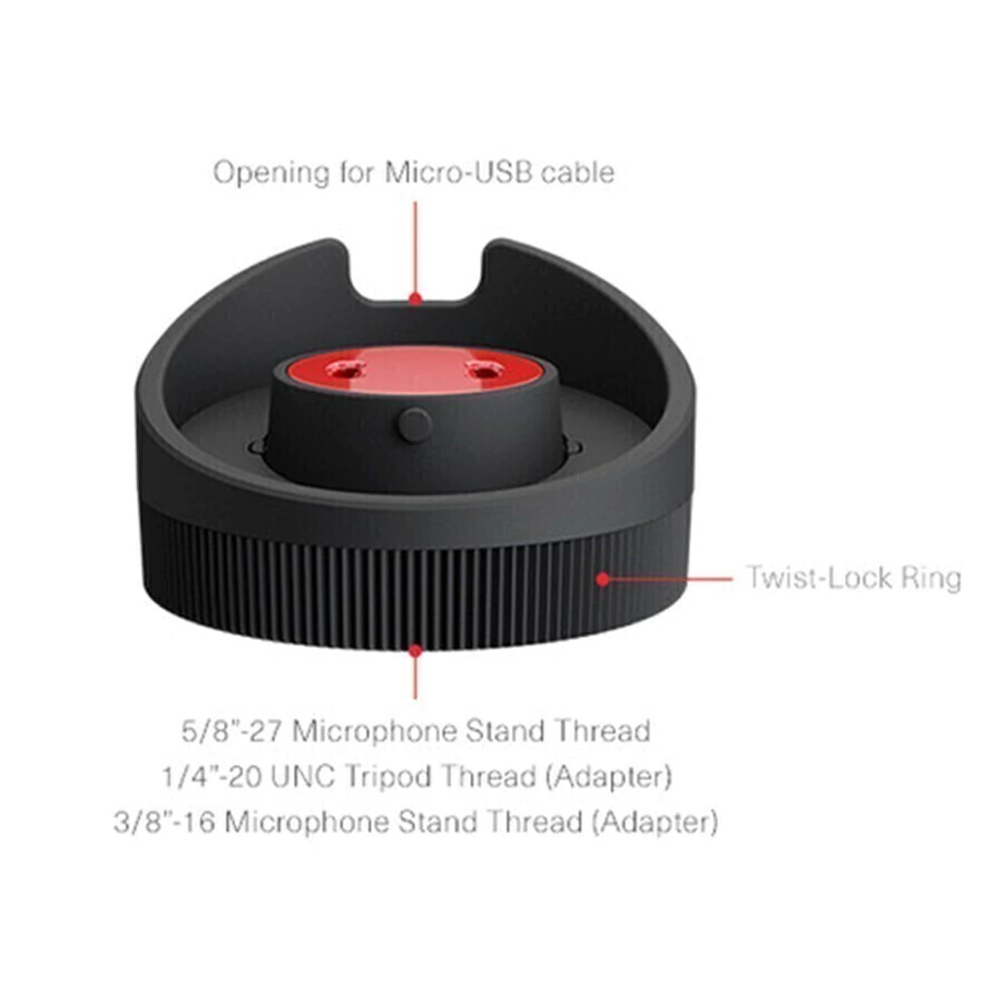 O áudio é manipulado com um microfone estéreo integrado, cujo sinal pode ser combinado com qualquer fonte de áudio conectada ao conector de áudio do dispositivo móvel.