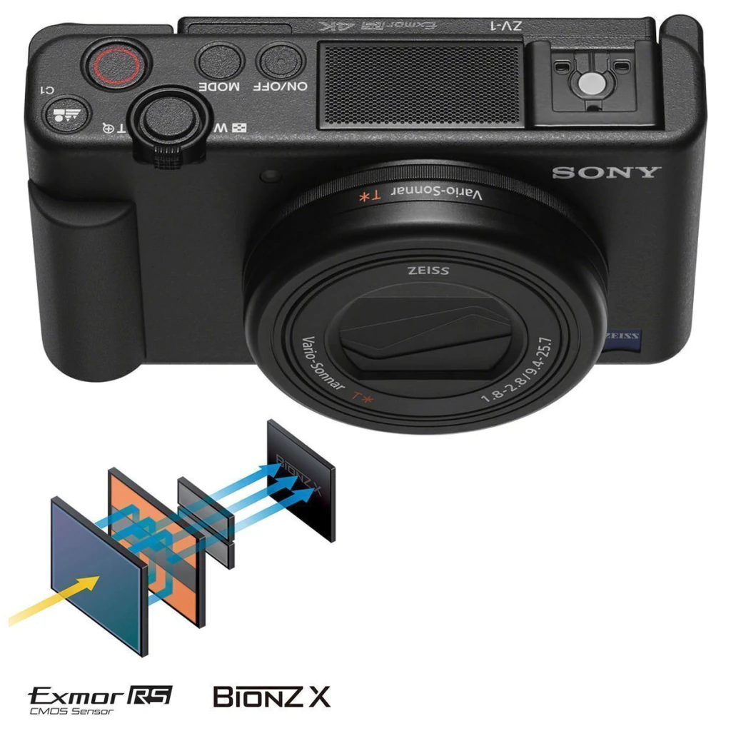Por dentro, o ZV-1 possui alguns atributos de imagem familiares na forma de um sensor CMOS empilhado Exmor RS de 20,1 MP de 1 "tipo e processador de imagem BIONZ X