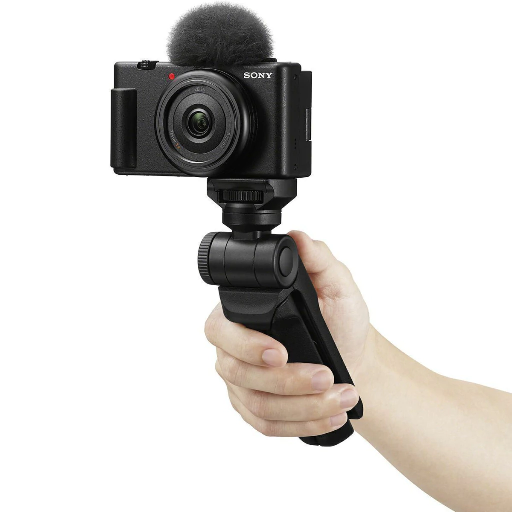 Este Kit foi pensado especificamente para vloggers e criadores de conteúdo on-line, a câmera Sony ZV-1F Vlogging é uma câmera de bolso com um sensor grande de 1" e uma lente grande angular equivalente a 20 mm, além disso acompanha um grip bluetooth Sony GP-VPT2BT, a cabeça integrada pode ser inclinada 80° para cima (40° quando configurada como tripé), 90° para baixo e girar 360° para facilitar o posicionamento. A empunhadura é resistente à poeira e à umidade para se adequar ao uso com câmeras selecionadas à prova de intempéries.