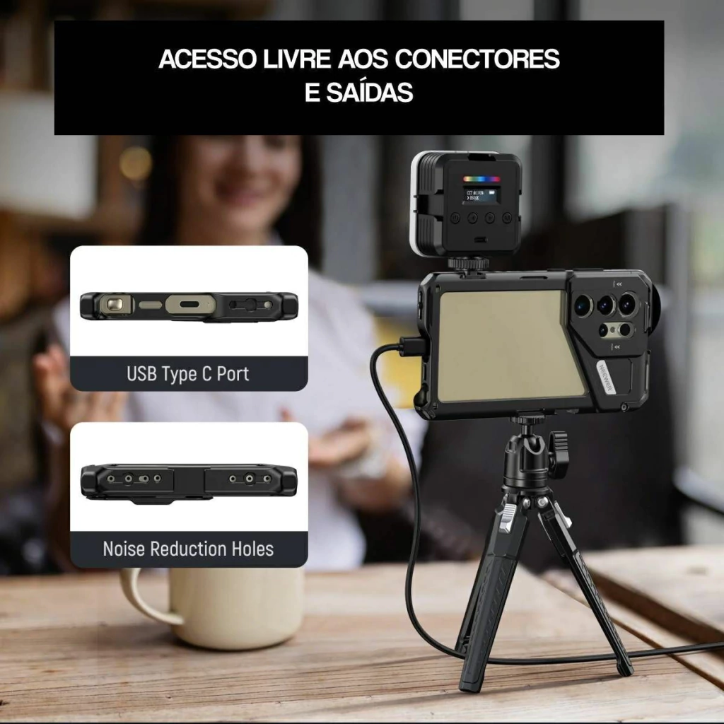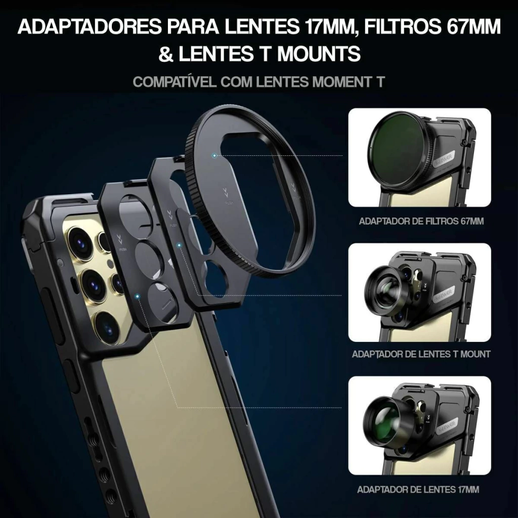Gaiola CAGE Neewer para Samsung S24 Ultra com 3 adaptadores para FITLROS e LENTES.