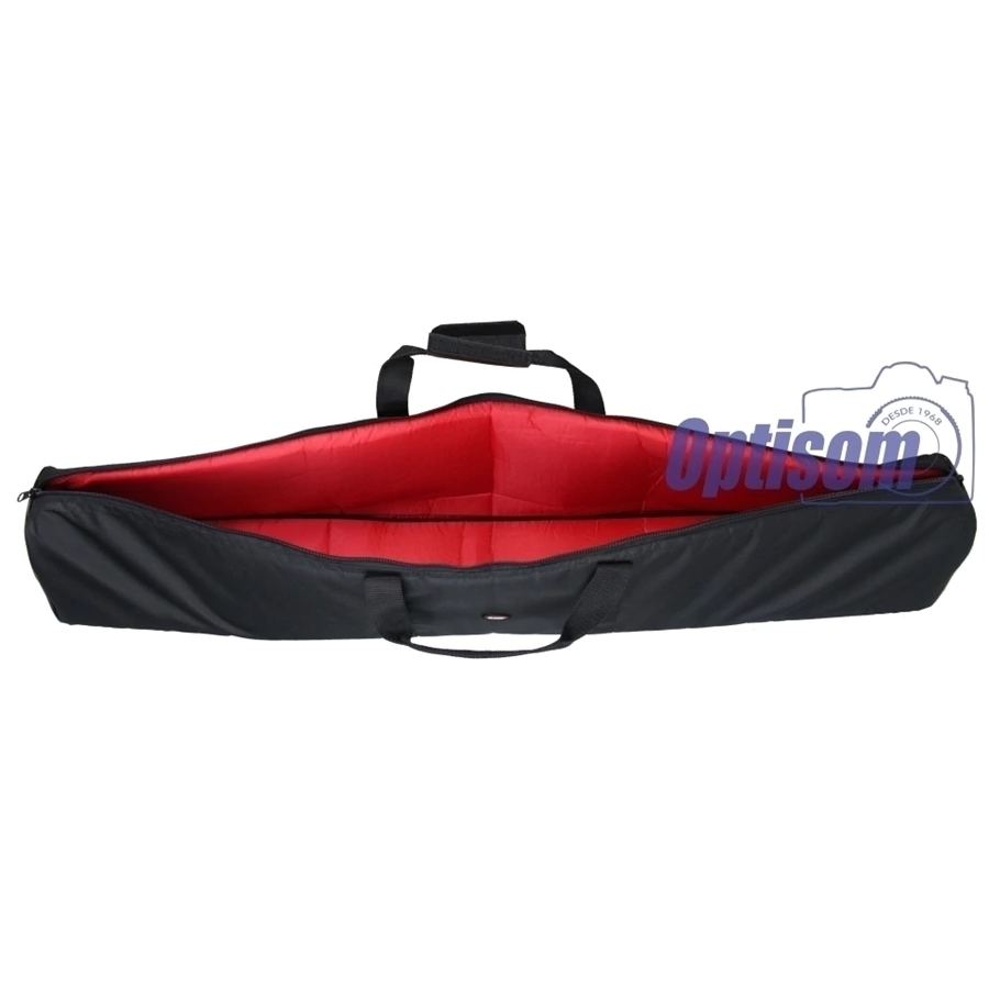 Acomodas tripes de até 1 metro de altura Pode acomodar até 4 tripes de iluminação Zíper central e simples de fácil manuseio Alça dupla de mão Cor externa do tecido preta. Suporta 15 kilos 03 meses de garantia contra defeitos de fabricação(Não inclui desgaste natural ou mal uso)