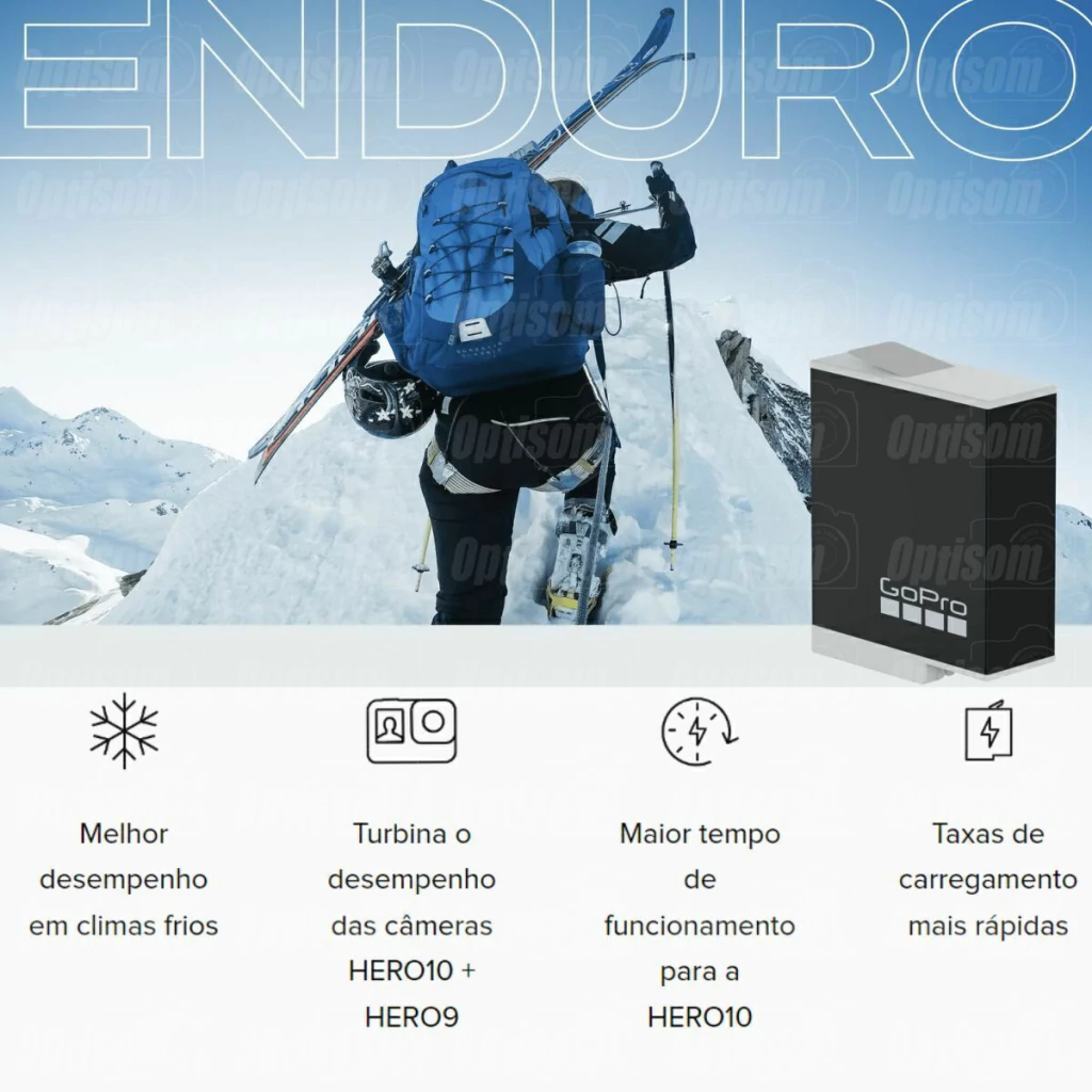 Bateria ENDURO Gopro são baterias que duram longos períodos em temperaturas frias.