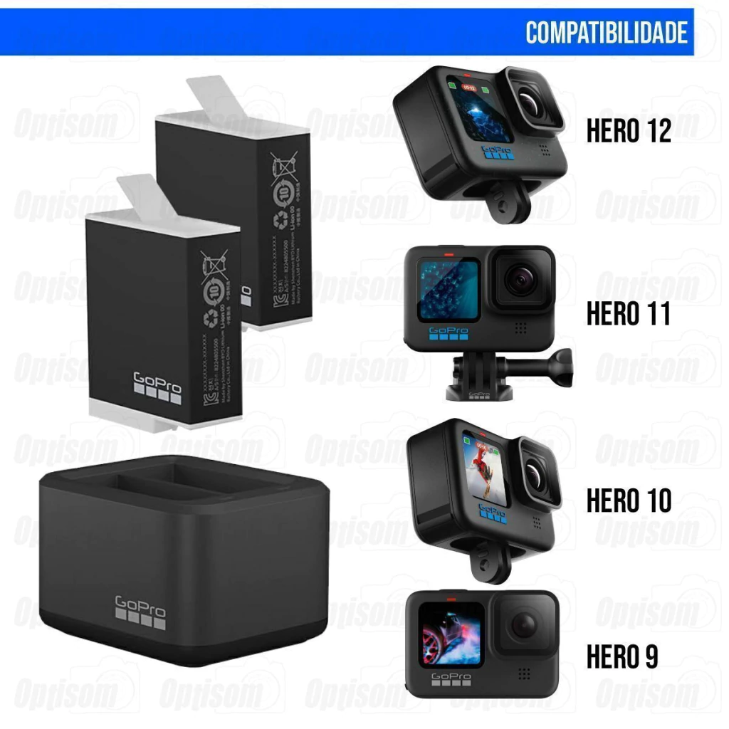 Kit 2 Baterias Recarregáveis Enduro Gopro ADBAT011 ORIGINAL + CARREGADOR DUPLO GOPRO.